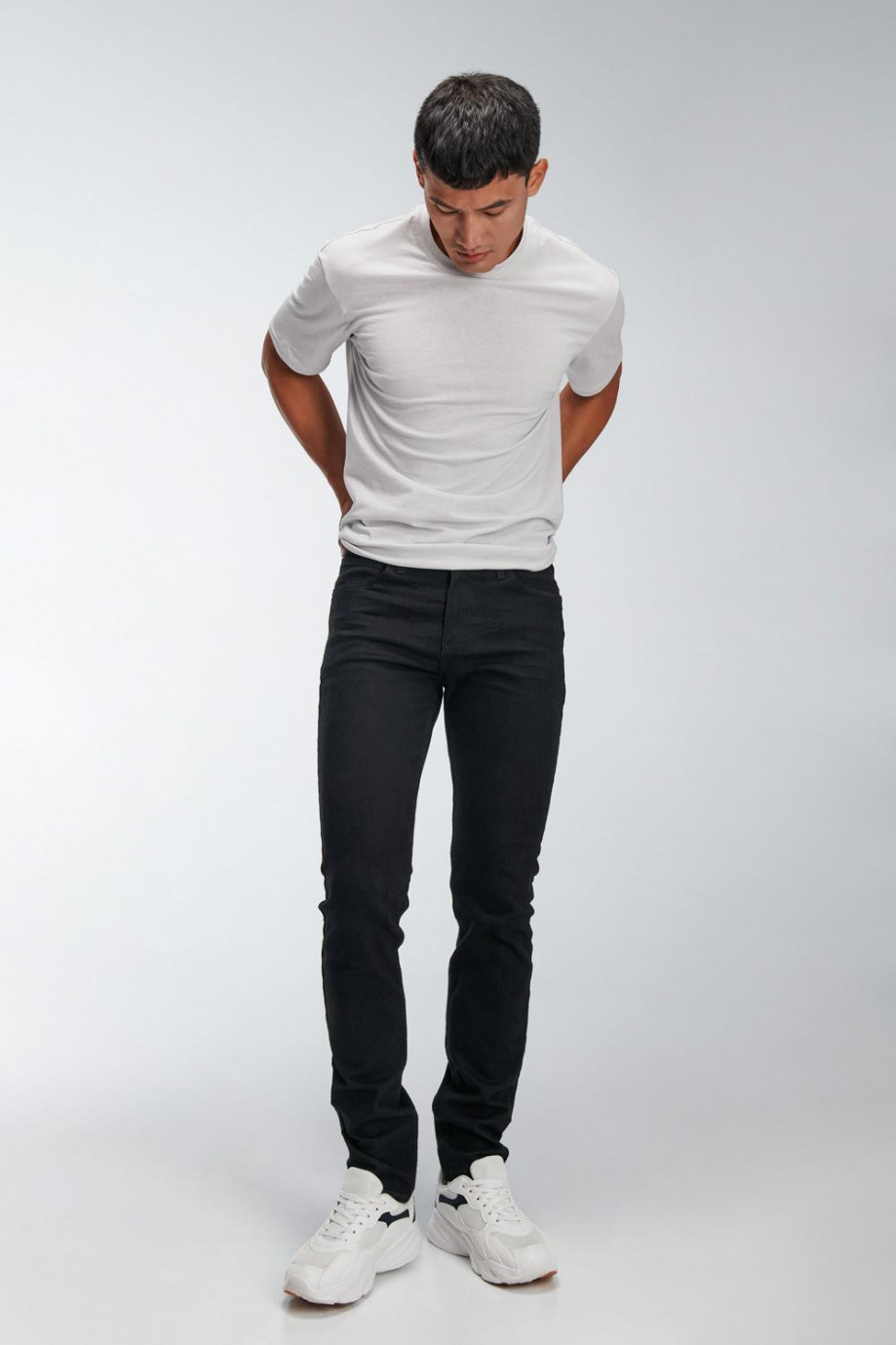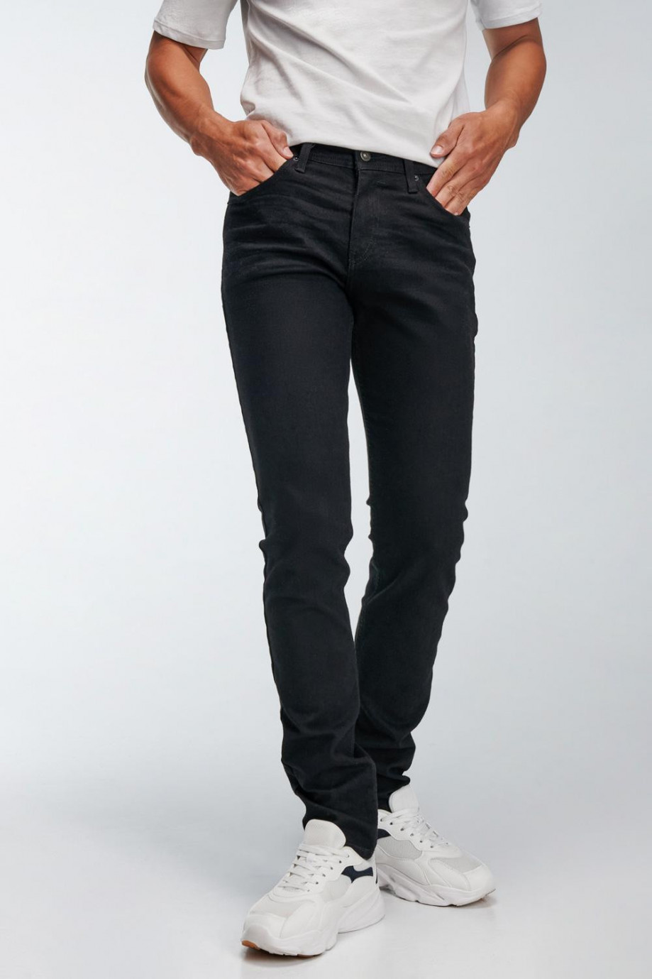 Jean para hombre, 5 bolsillos, tiro bajo, ajuste ceñido con lavado negro