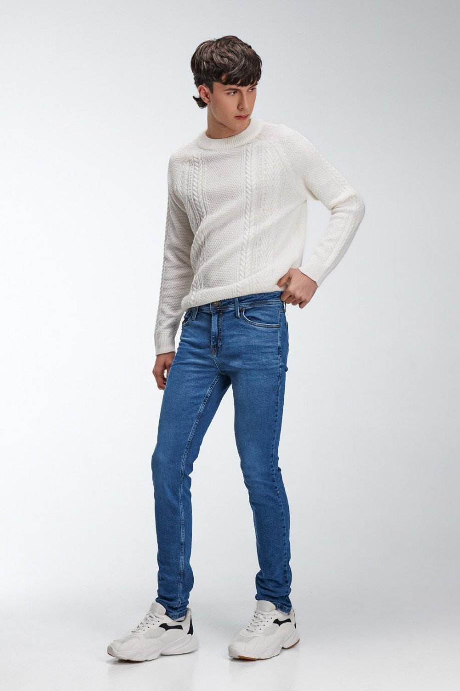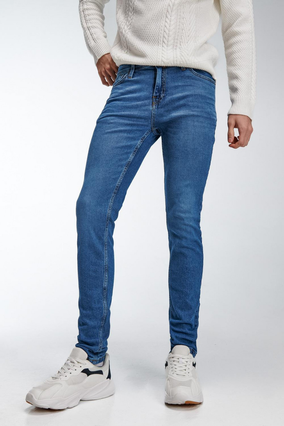 Jean para hombre, 5 bolsillos, tiro bajo, ajuste ceñido con lavado medio