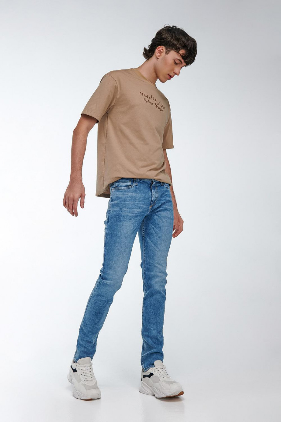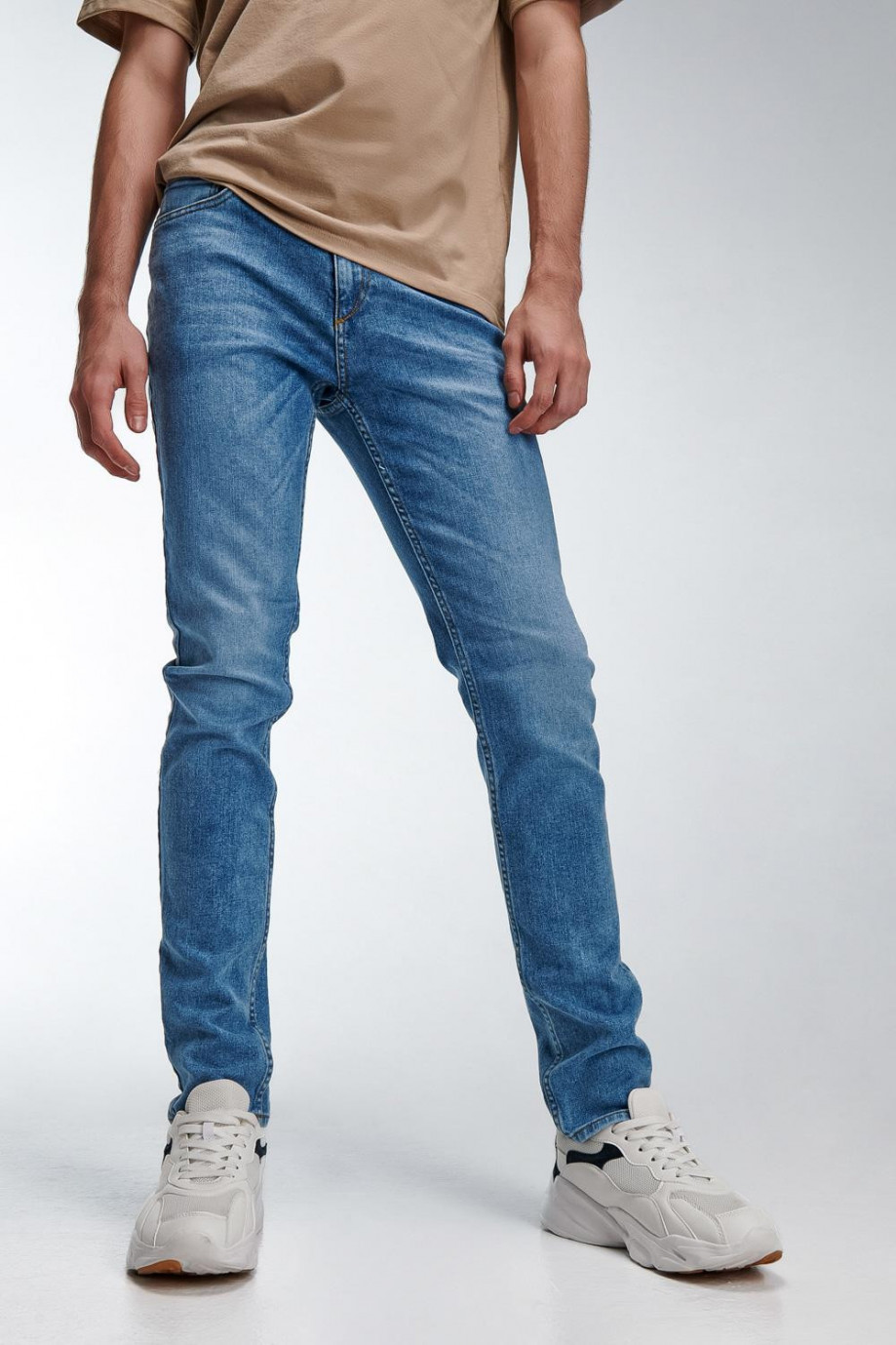 Jean para hombre, 5 bolsillos, tiro bajo, ajuste ceñido con lavado claro