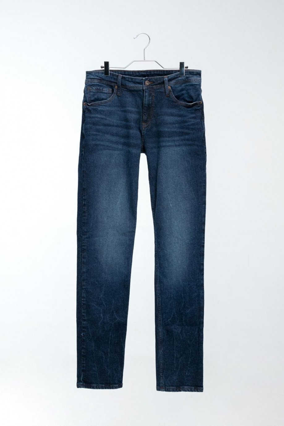 Jean para hombre, 5 bolsillos, tiro bajo ajustado con proceso de laser y lavado negro.