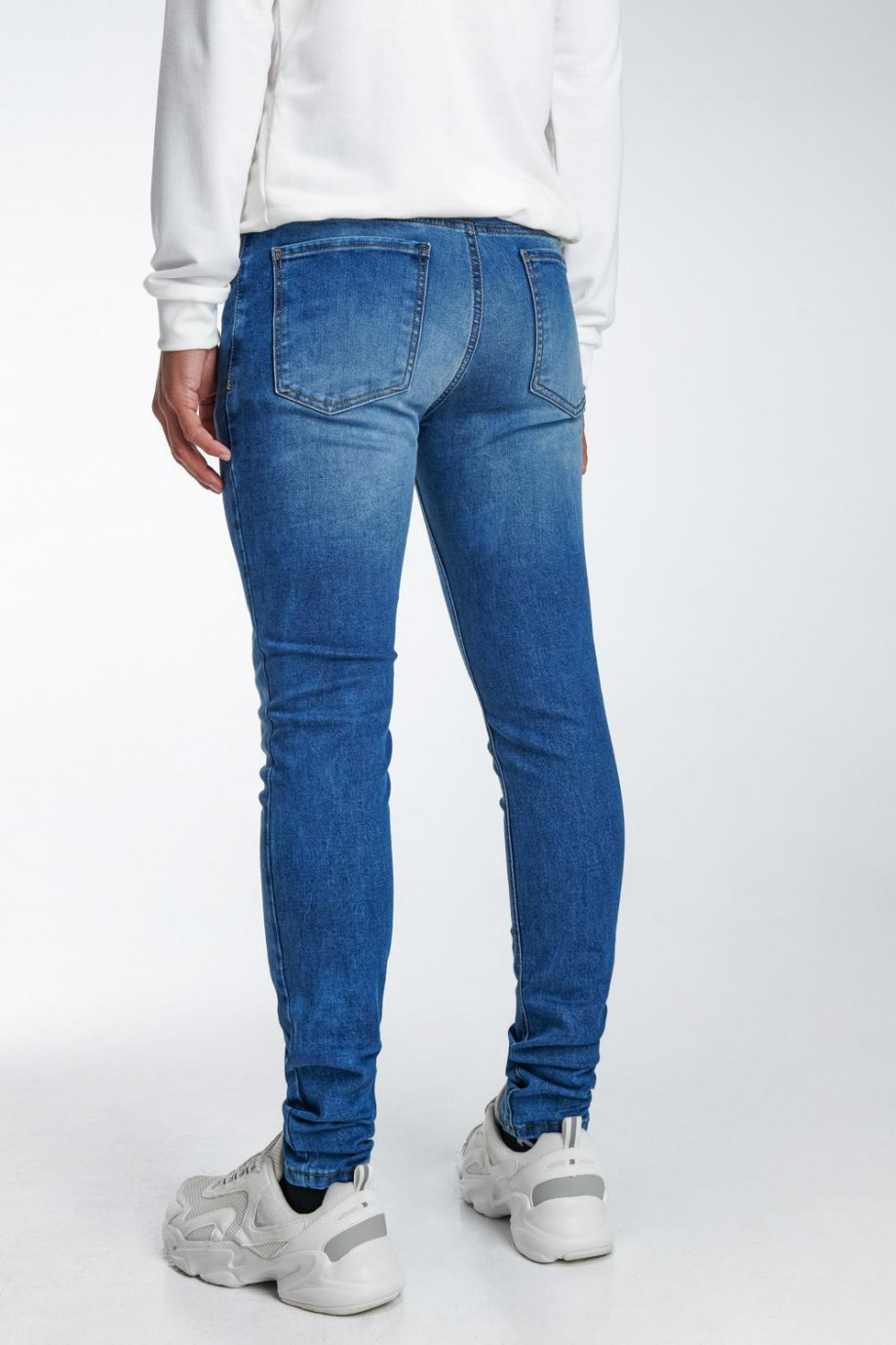 Jean para hombre, 5 bolsillos, tiro bajo ajuste muy ceñido con lavado medio.