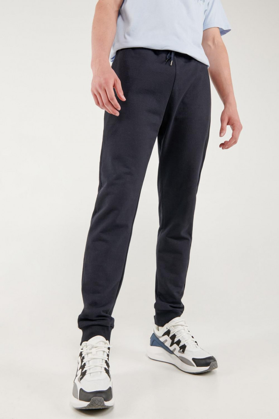 Pantalón jogger azul, con pretina y puños en rib