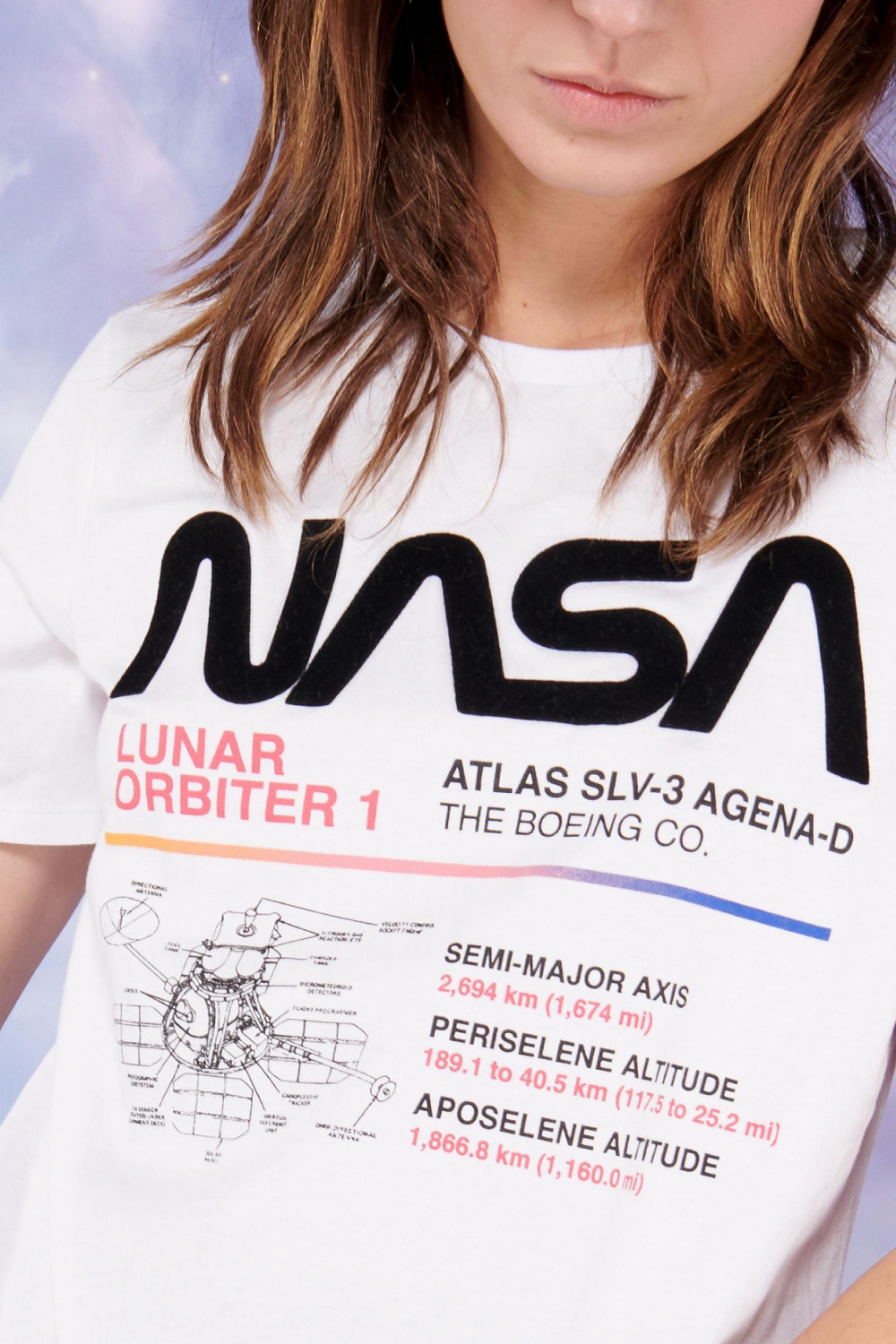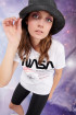 Camiseta para mujer cuello redondo manga corta, con estampado de la nasa