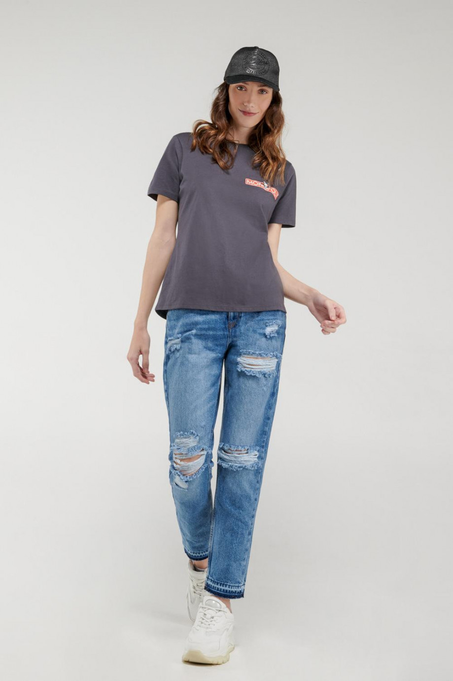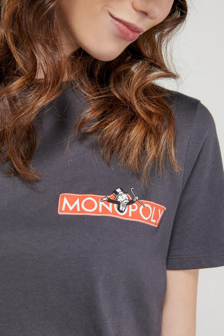 Camiseta paramujer, manga corta, con estampado en frente de Monopolio.