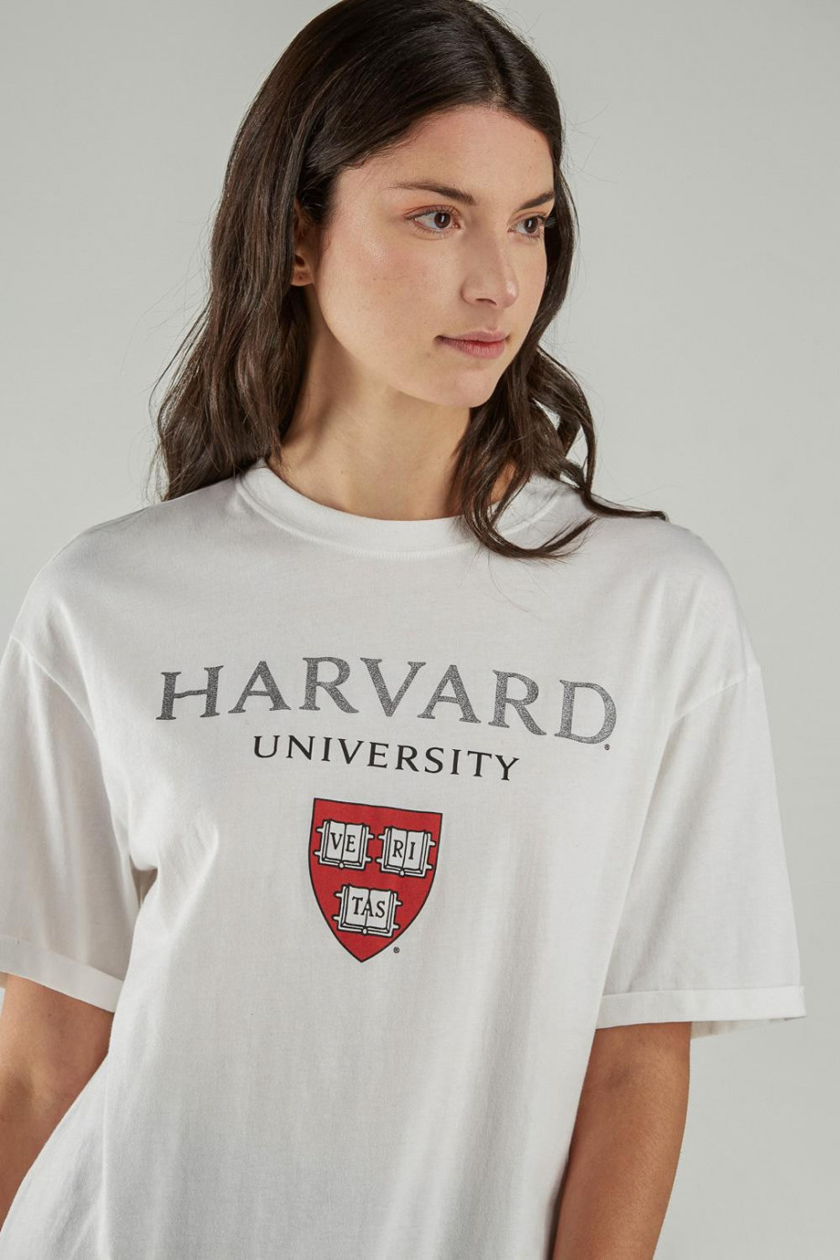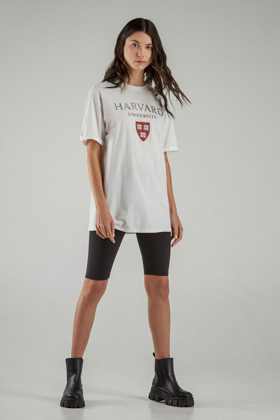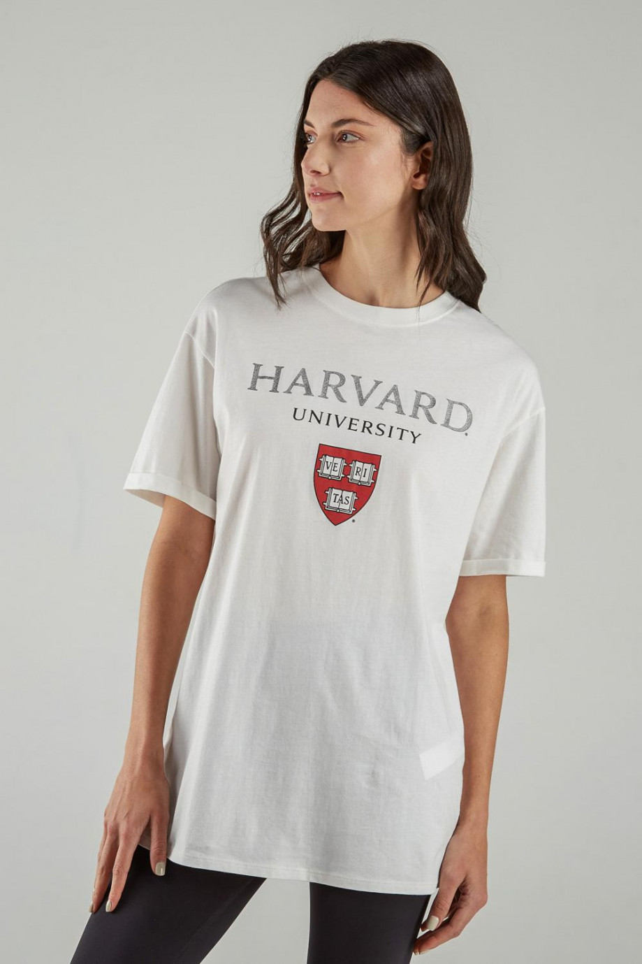 Camiseta, para mujer, manga corta, con estampado en frente y mangas de Harvard