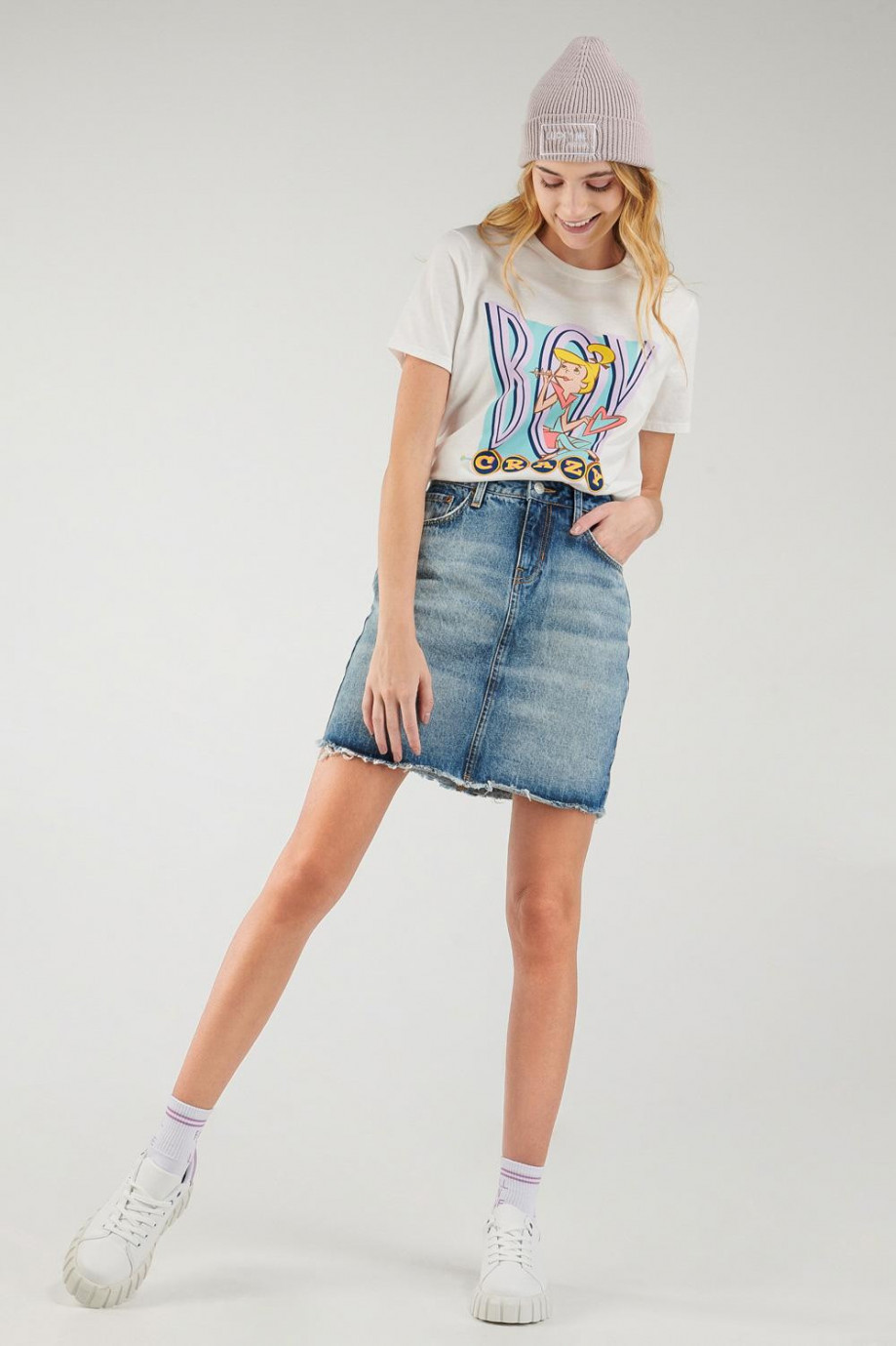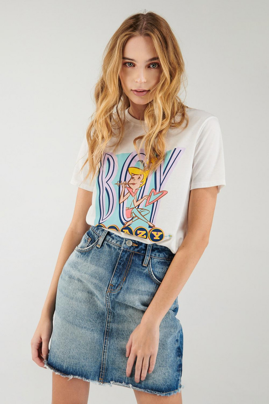 Camiseta manga corta, para mujer, con estampado en frente de Los Supersonicos.