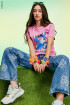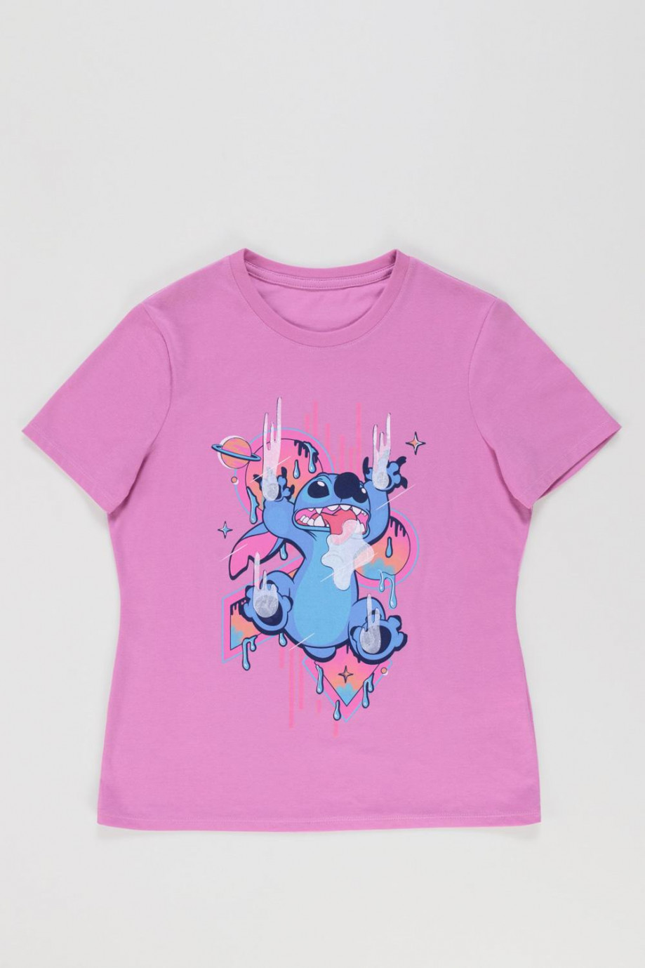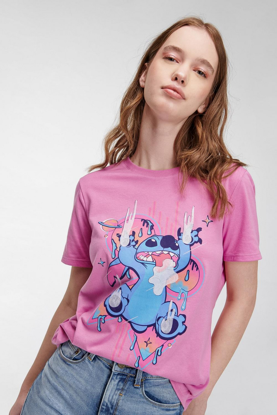 Camiseta para mujer, maga corta, estampada en frente de Lilo & Stitch, Disney