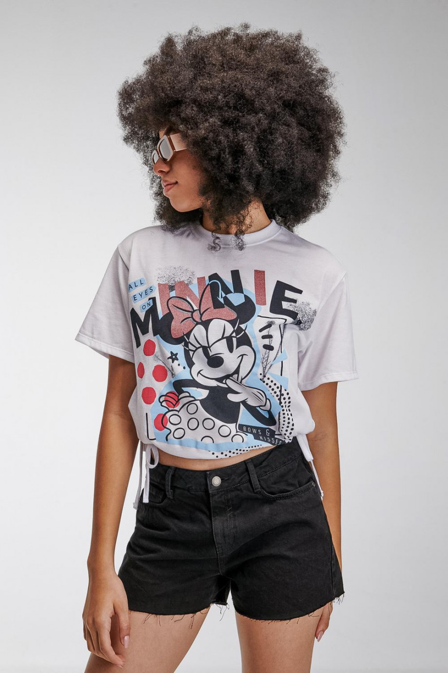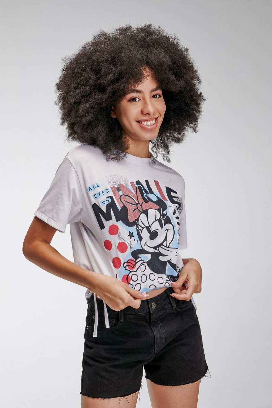 Camiseta, para mujer, manga corta, estampado en frente y espalda, de Minnie, Disney