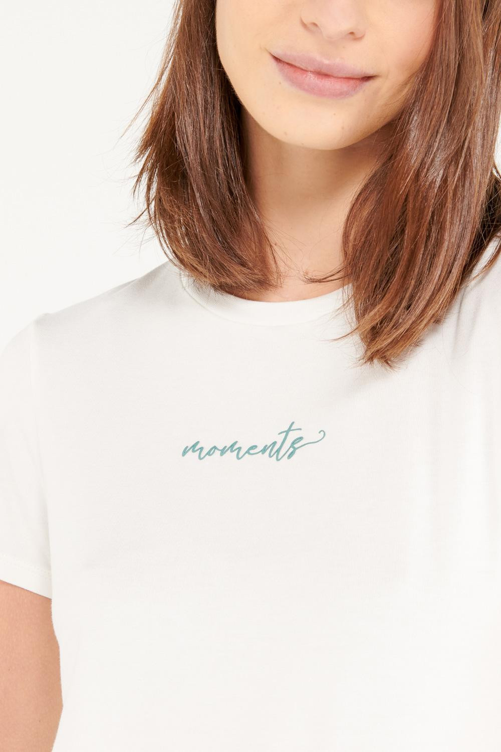 Camiseta para mujer, manga corta y cuello redondo con estampado.