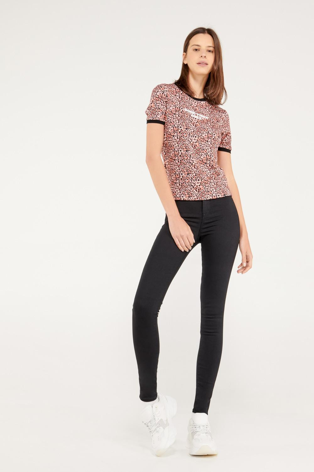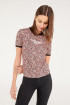 Camiseta cuello redondo para mujer, manga corta con puño en contraste, con estampado.
