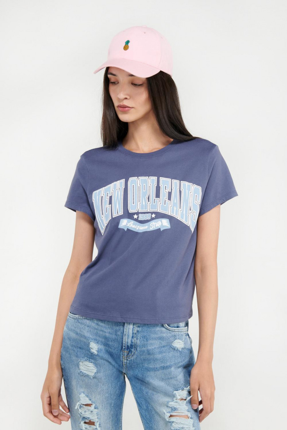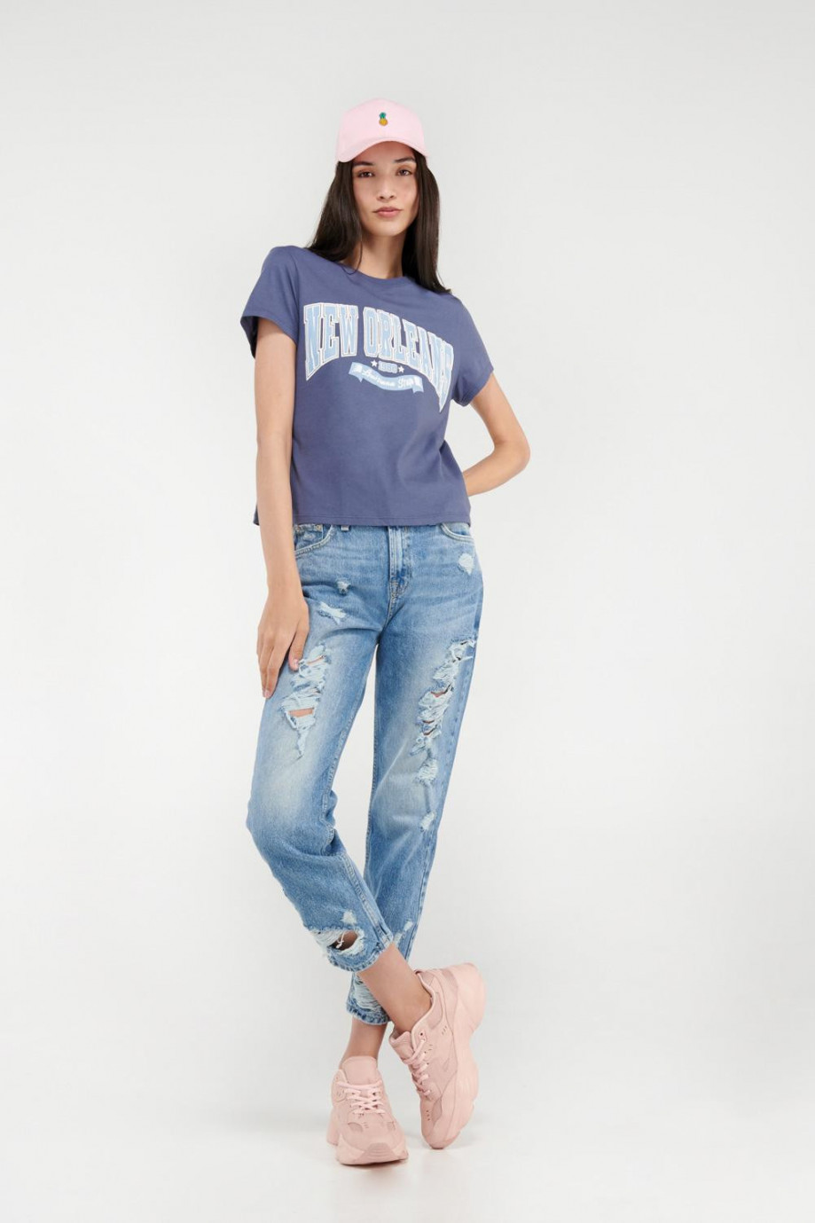 Camiseta manga corta para mujer básica, con estampado en frente.