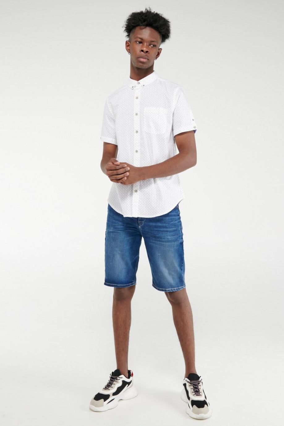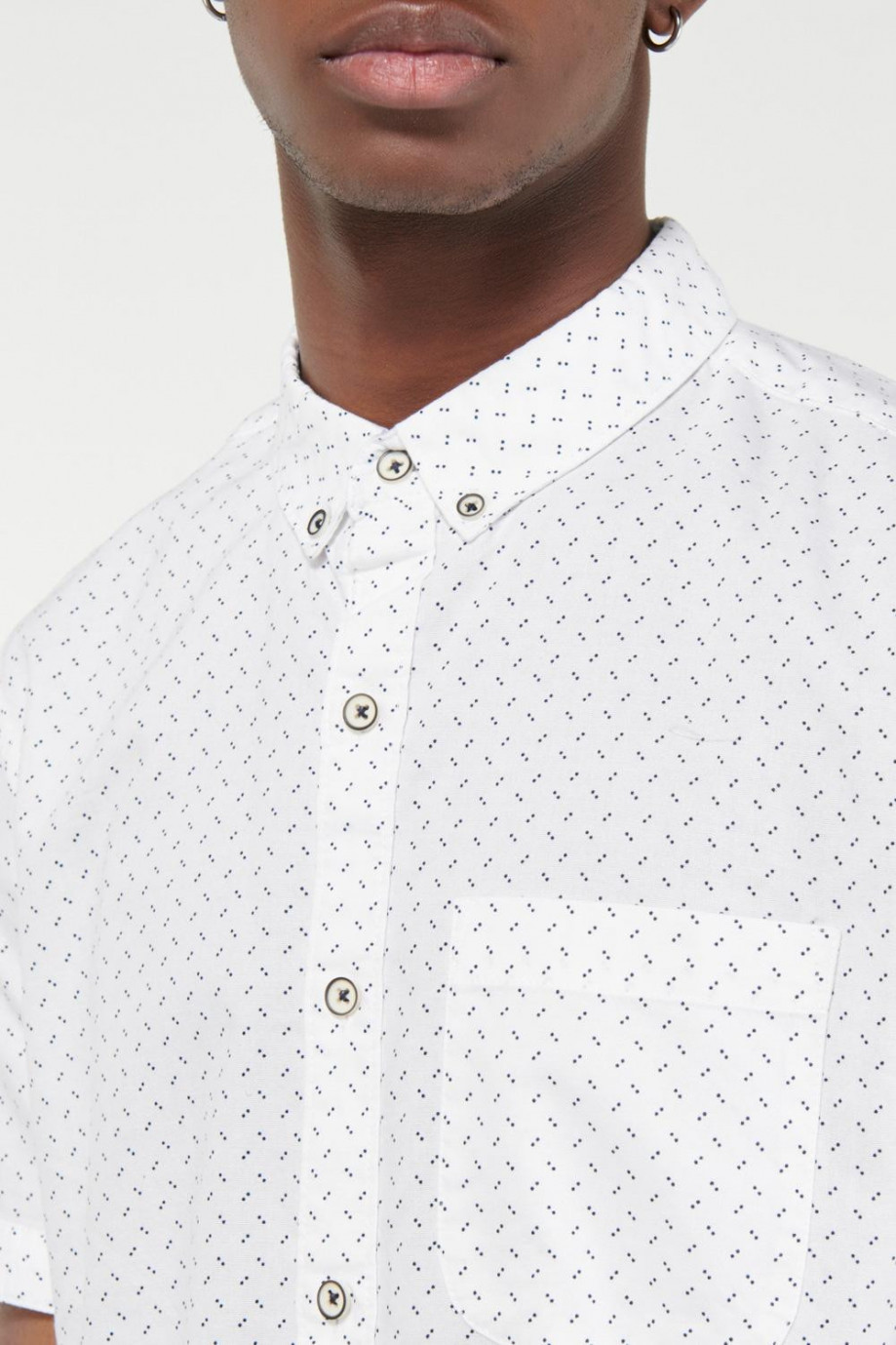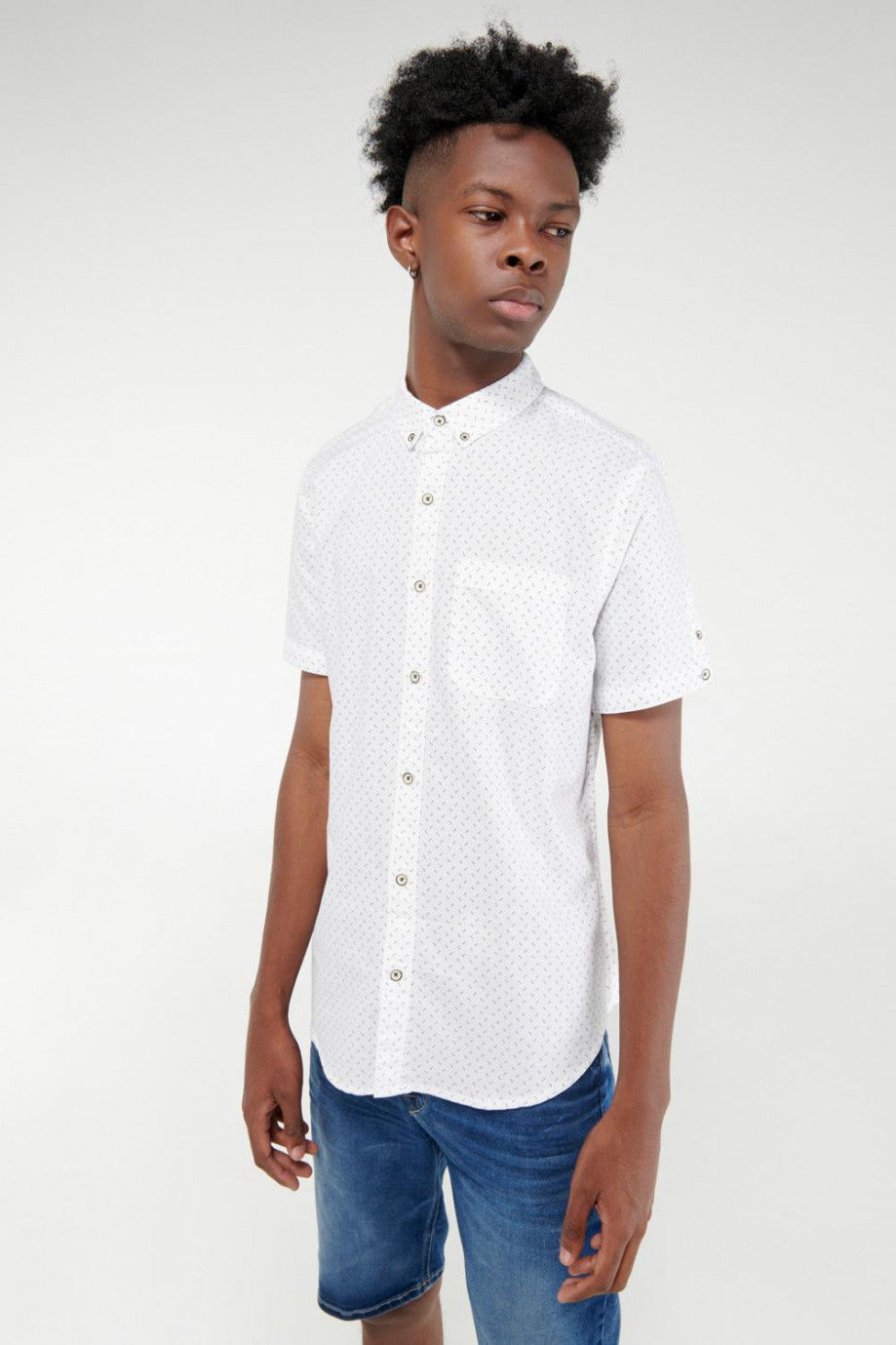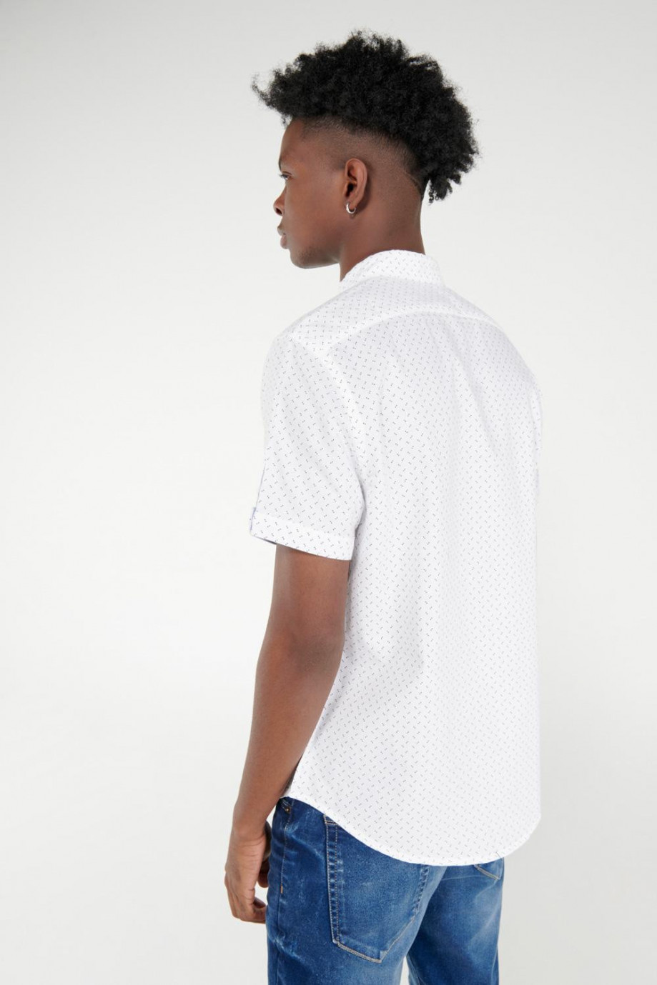 Camisa para hombre, en tela oxford estampada con abertura en mangas y botones