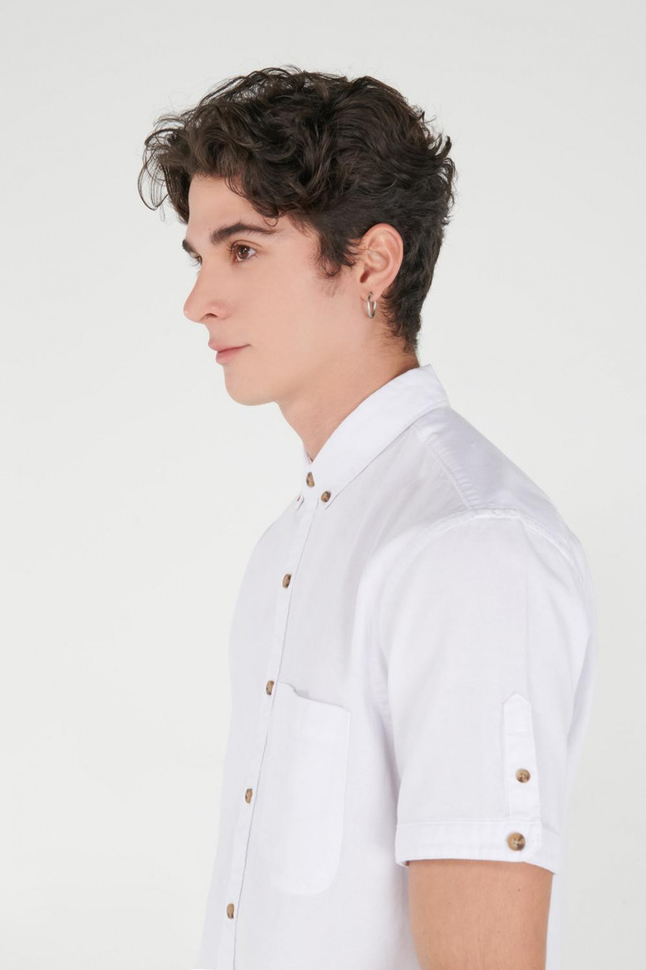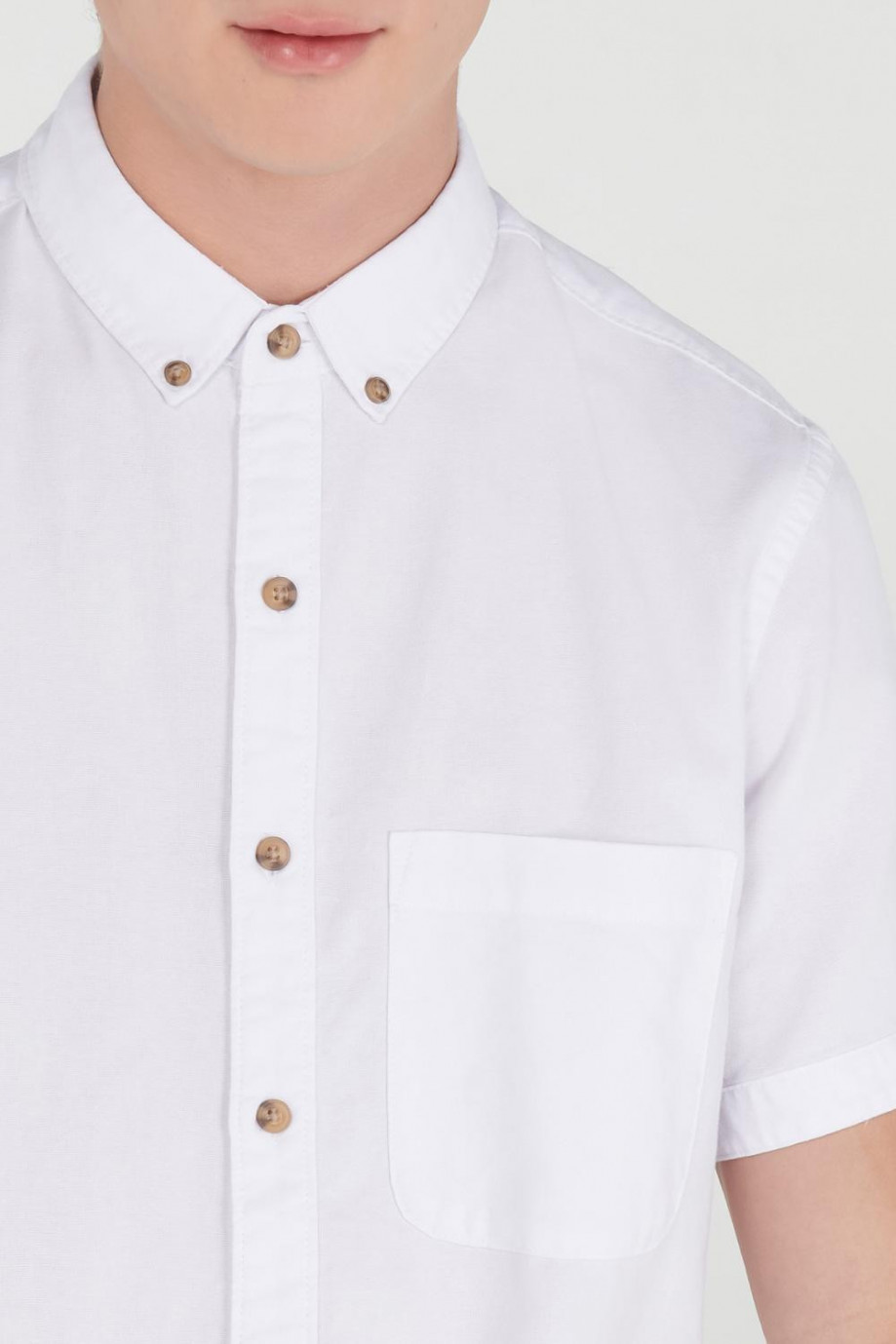 Camisa para hombre, en tela oxford unicolor con bolsillo delantero cuello button down