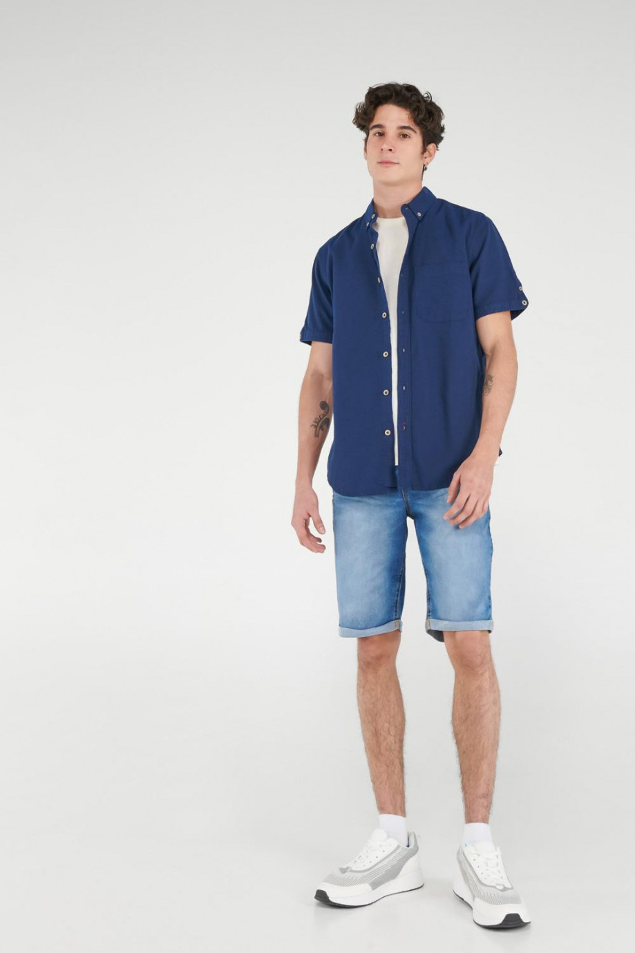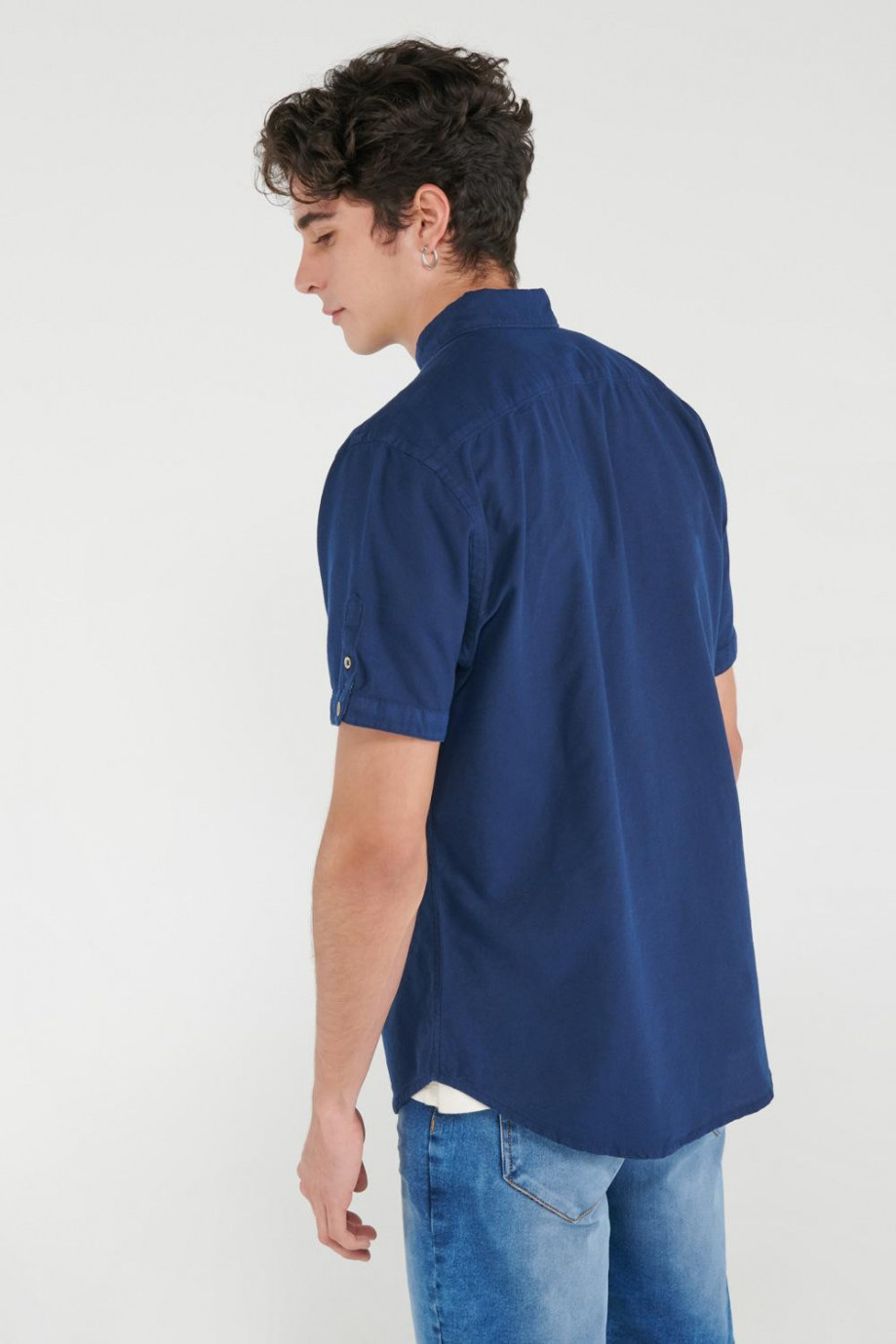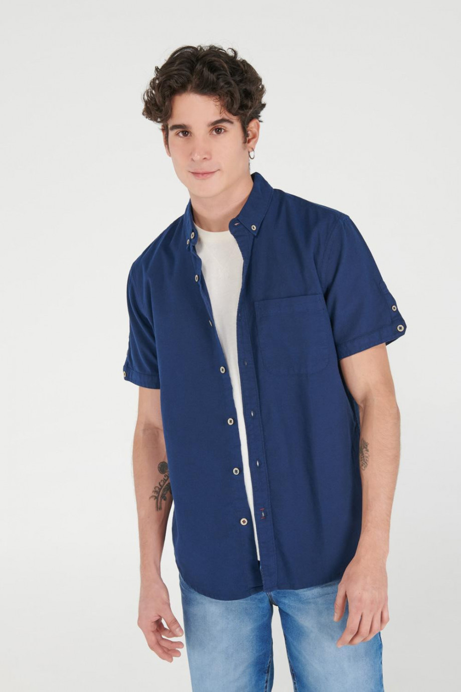 Camisa para hombre, en tela oxford unicolor con bolsillo delantero cuello button down