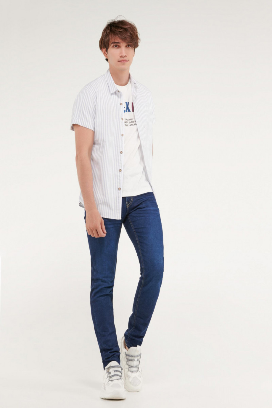 Camisa para hombre, en tela oxford a rayas con bolsillo delantero