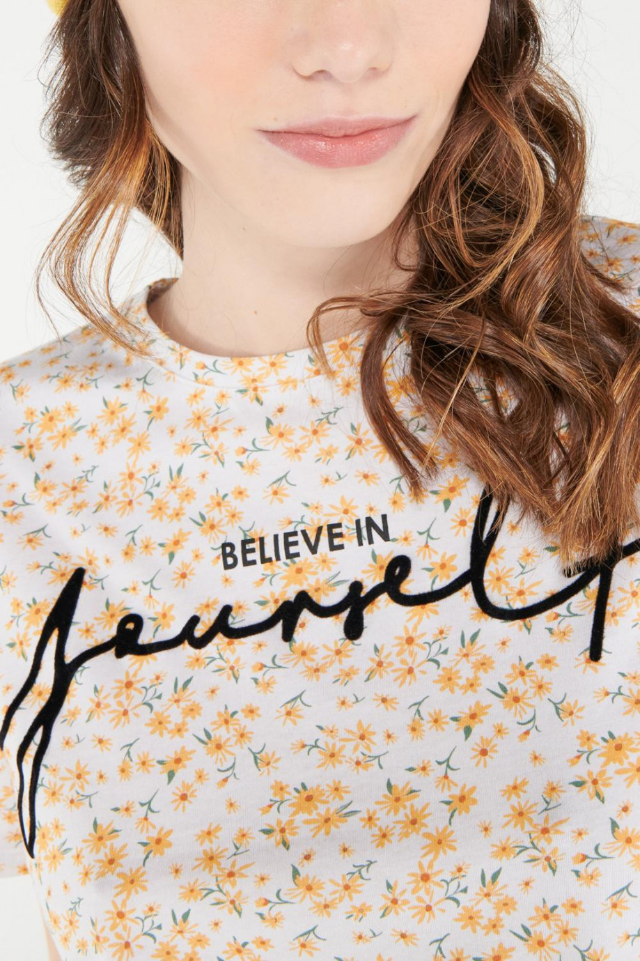 Camiseta manga corta para mujer básica, con estampado en frente.