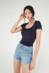 Camiseta de rayas para mujer, manga corta, cuello V.