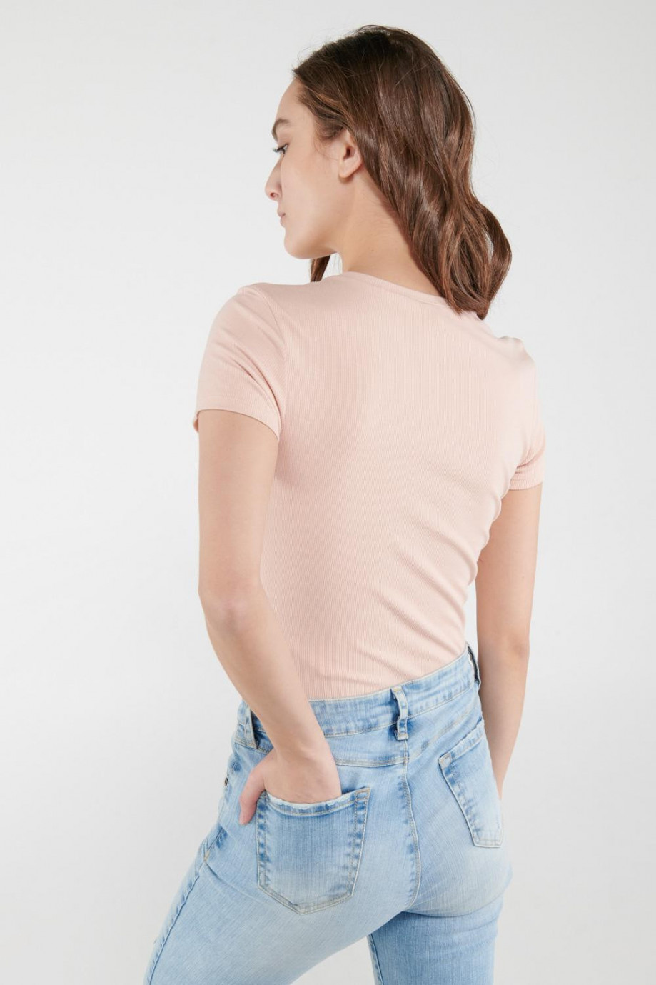 Camiseta básica para mujer, manga corta con cuello redondo.