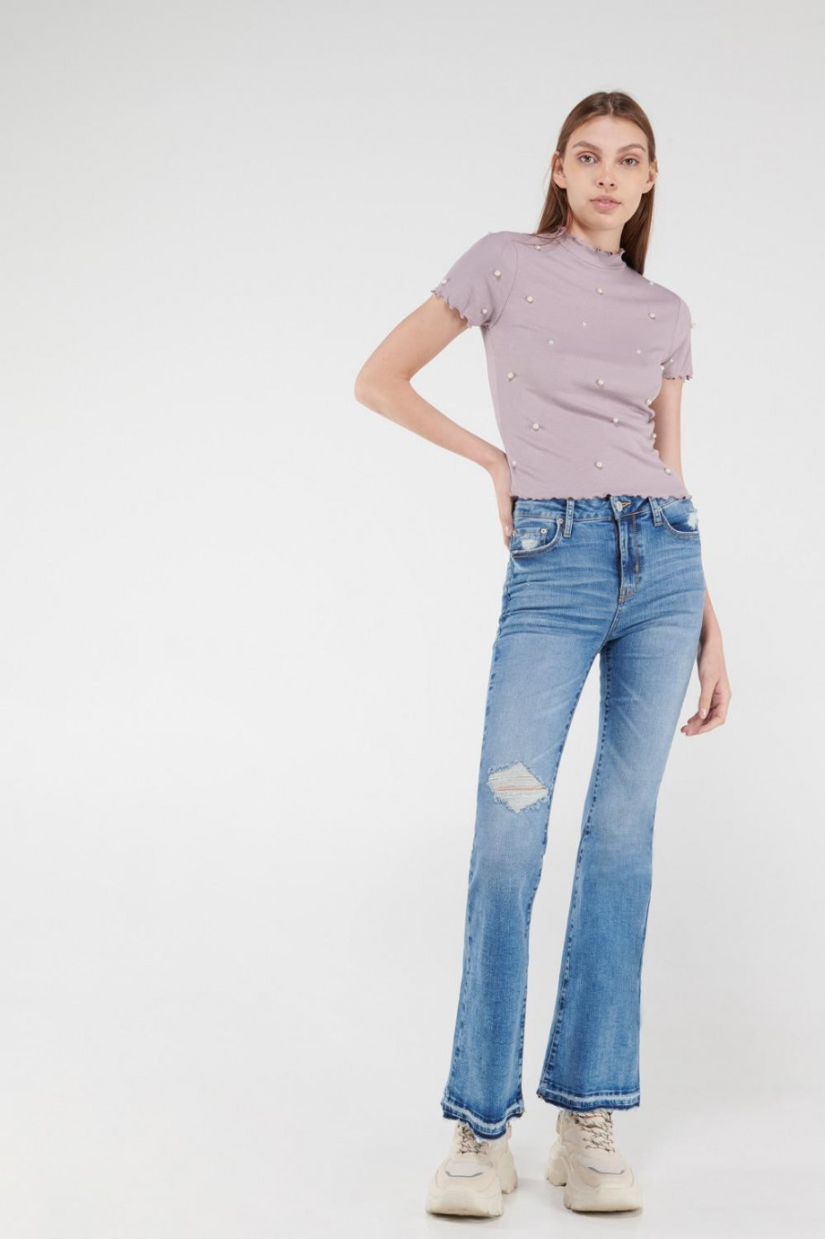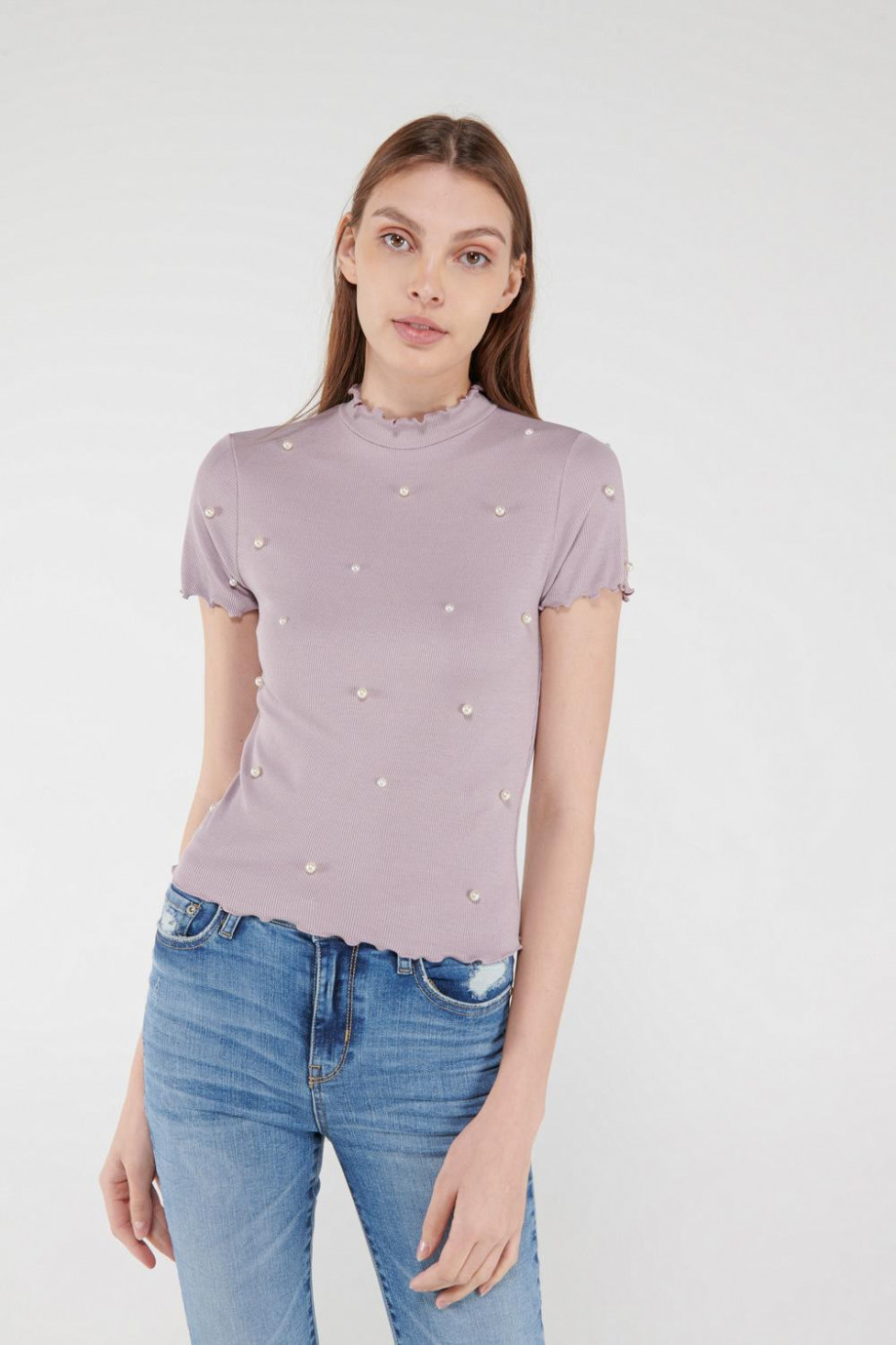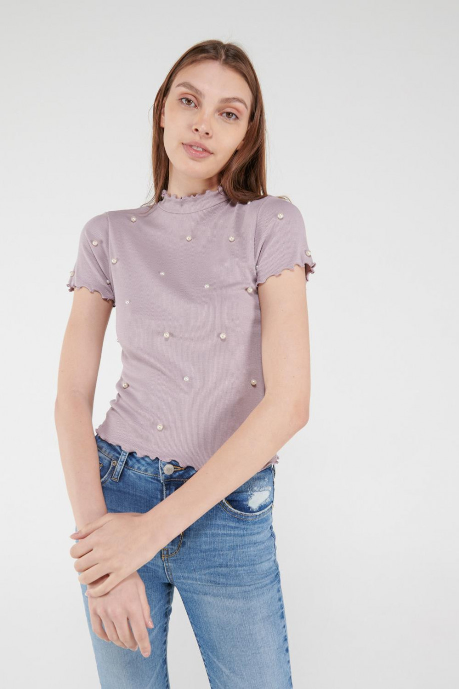 Camiseta manga corta con perlas