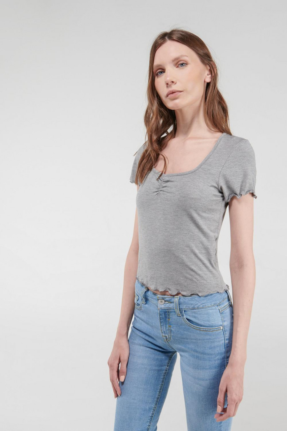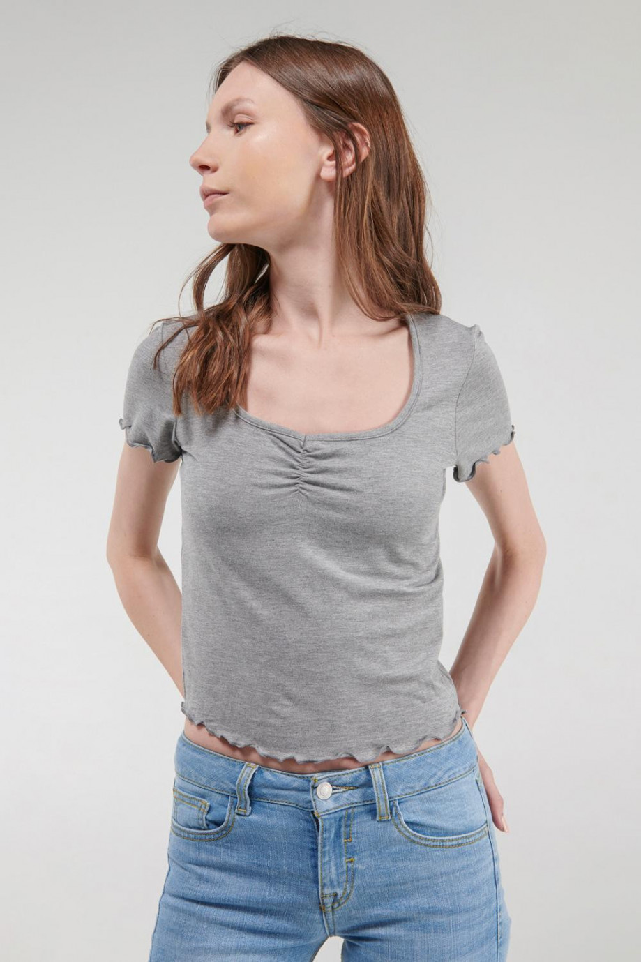 Camiseta de rayas para mujer, manga corta, cuello V.