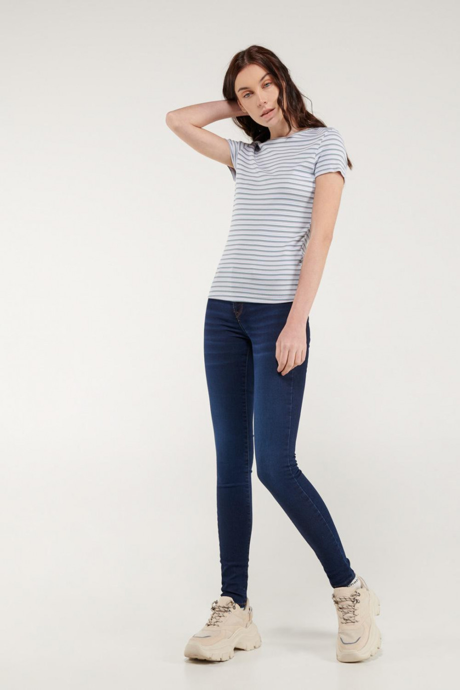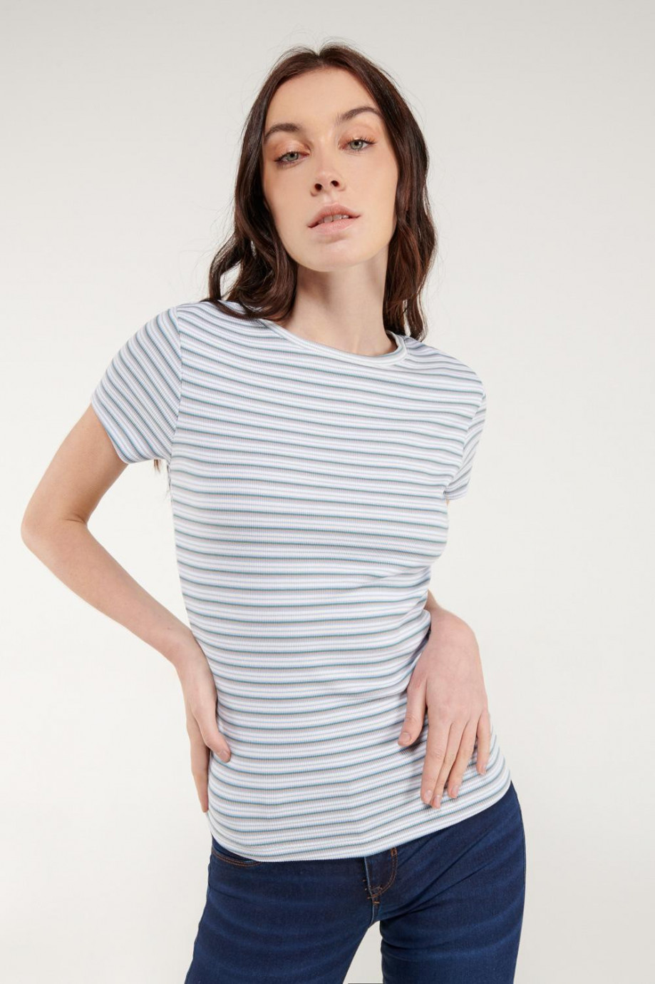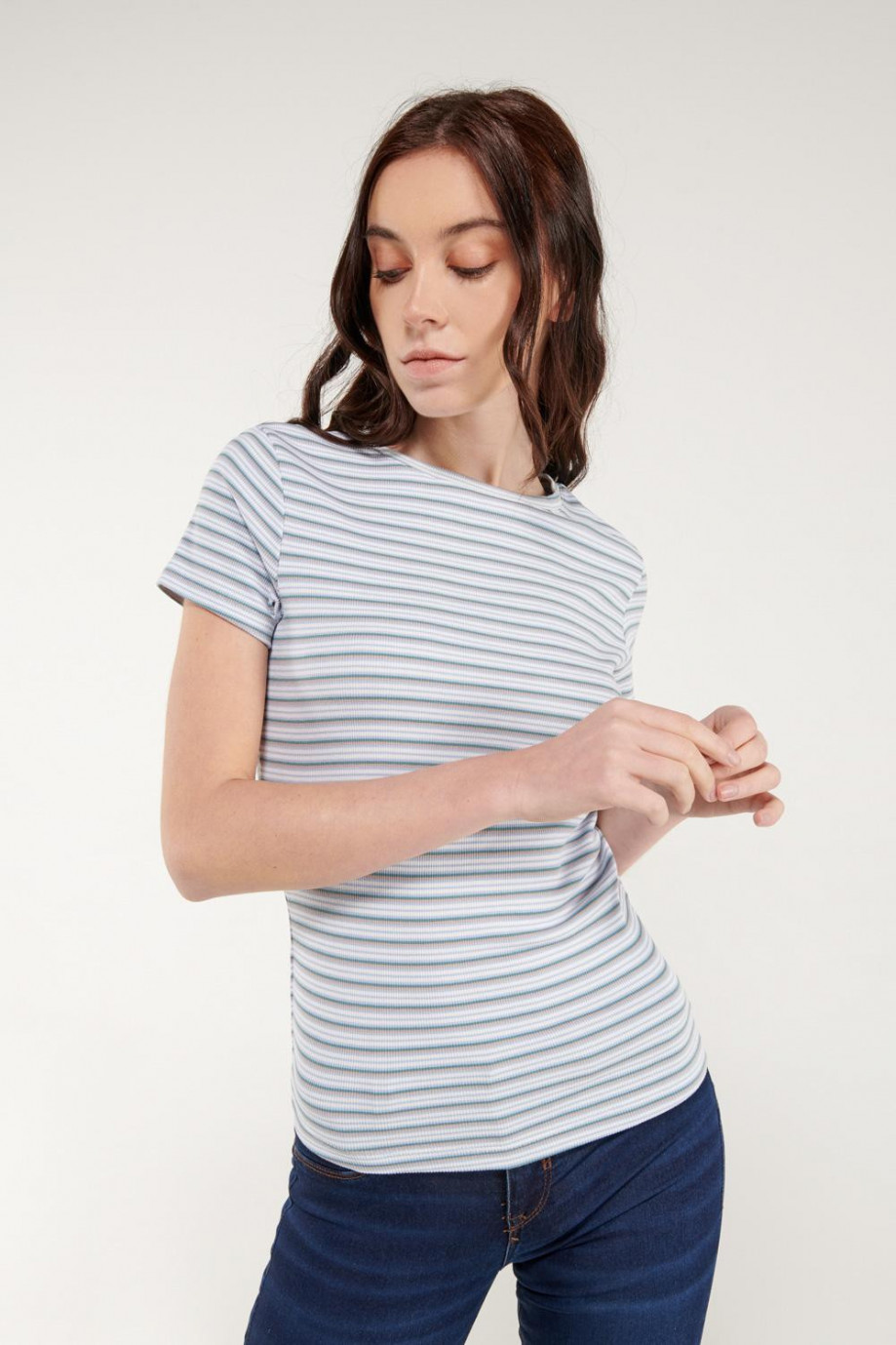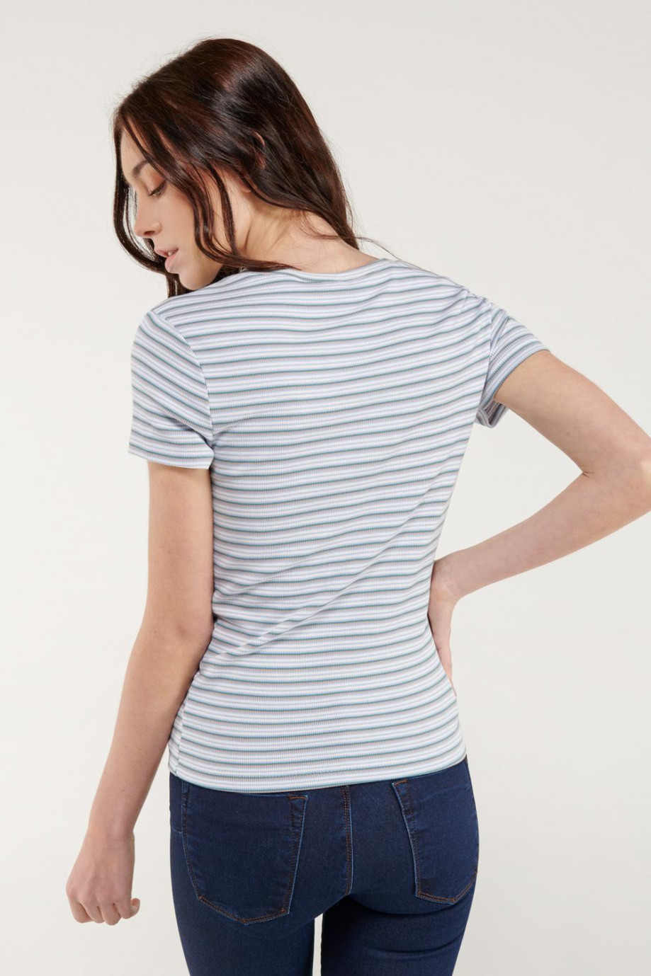 Camiseta básica para mujer, manga corta con cuello redondo.