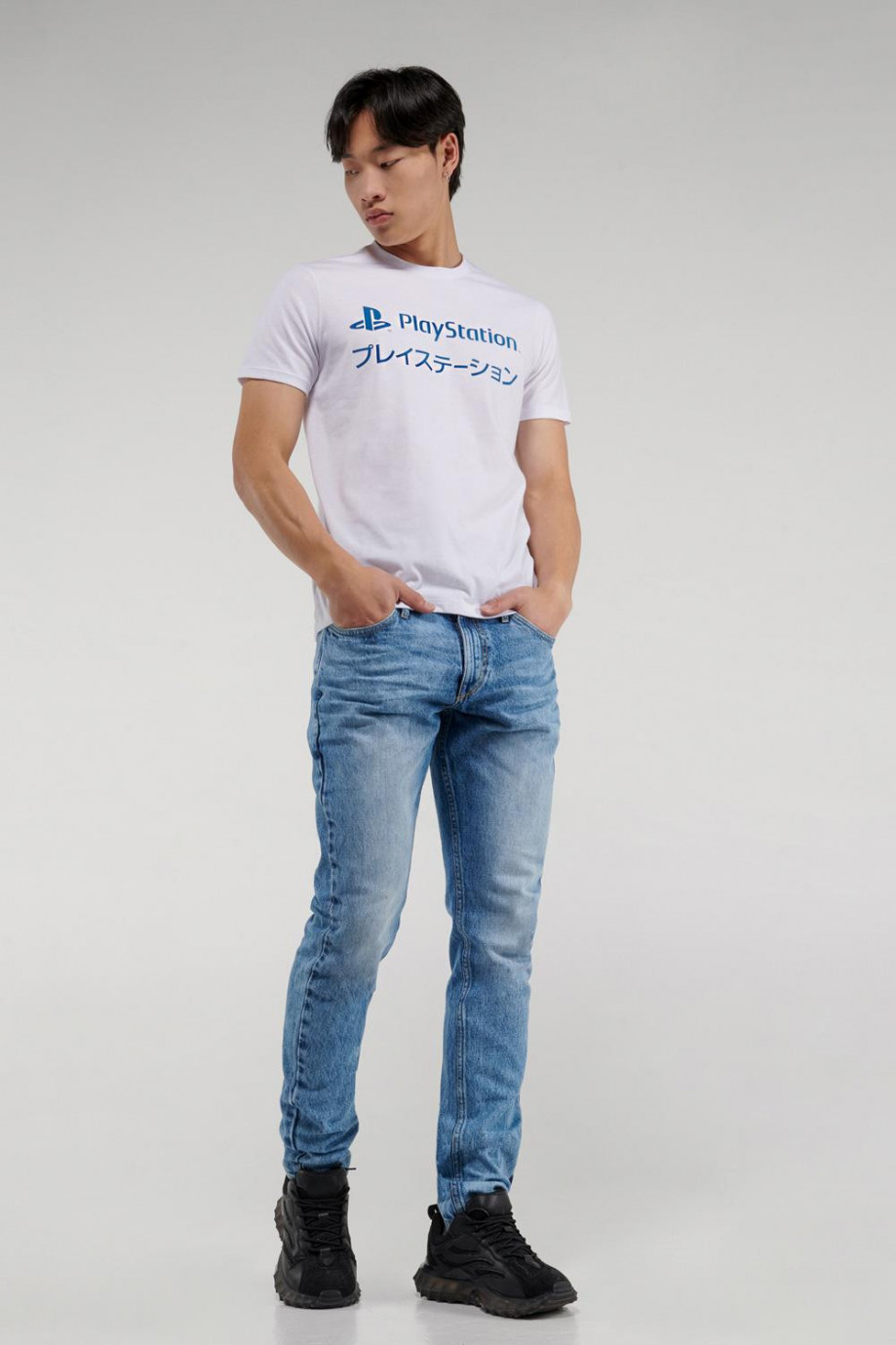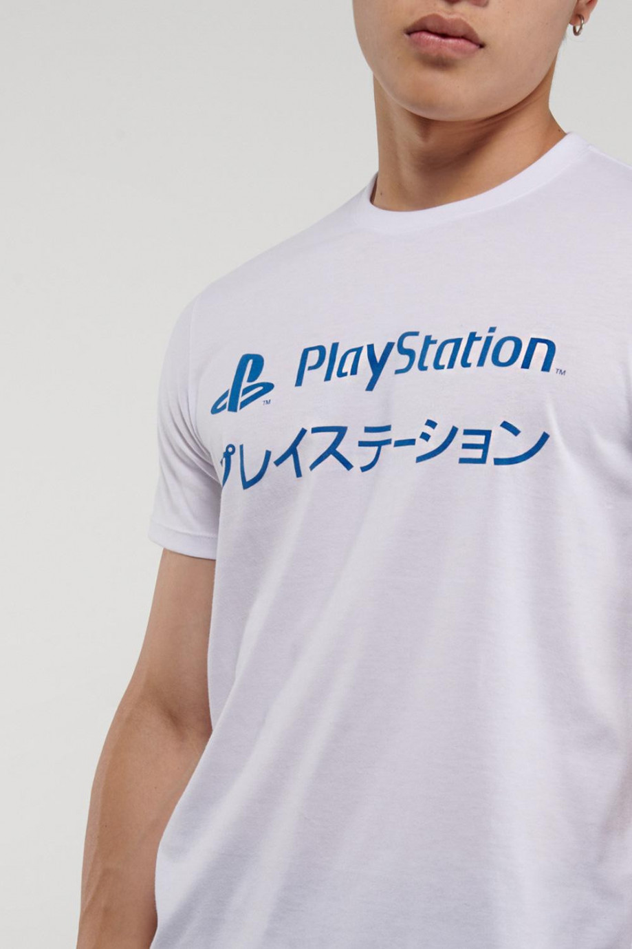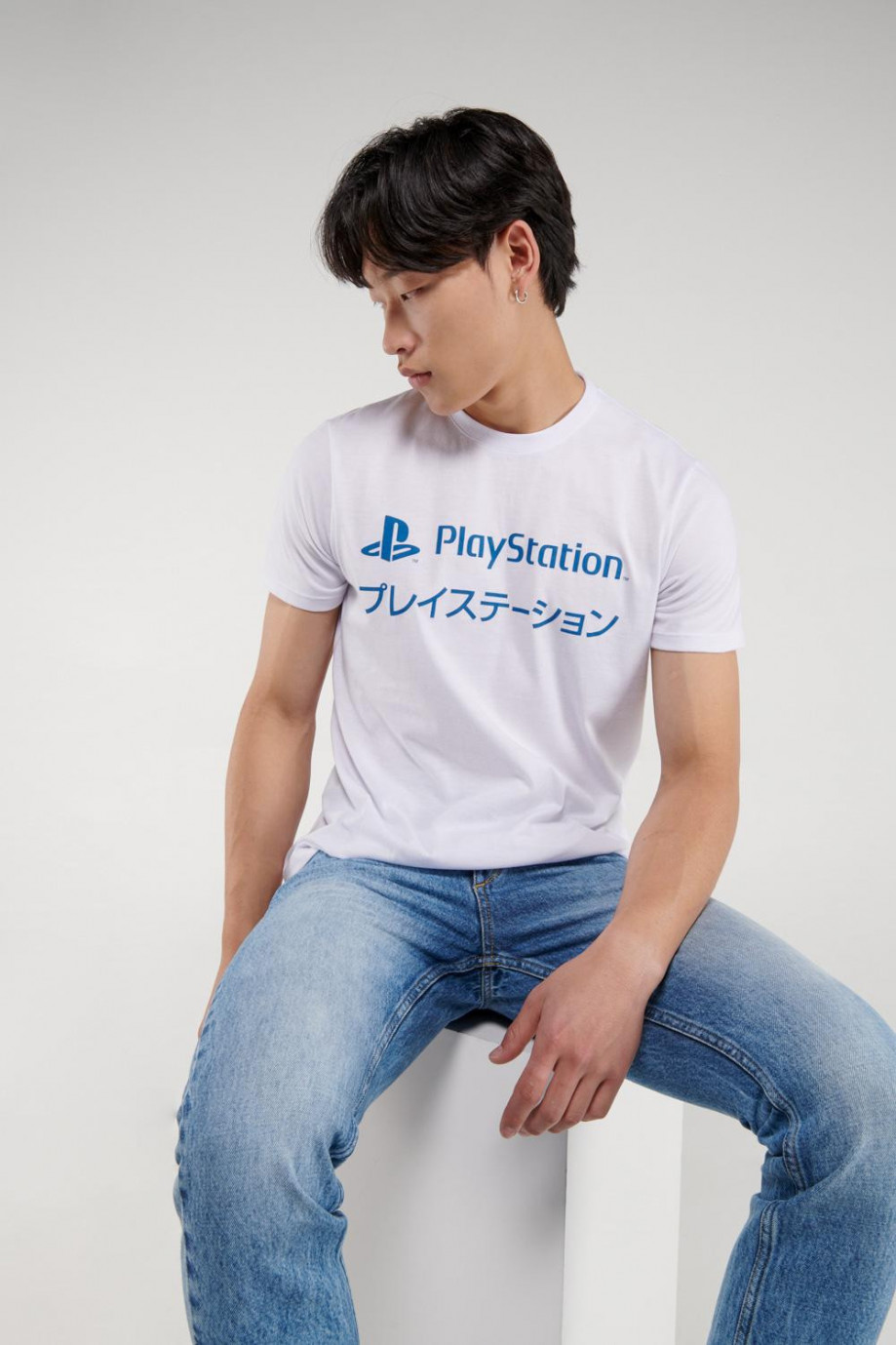 Camiseta para hombre, cuello redondo, estampada en frente de Play Station.