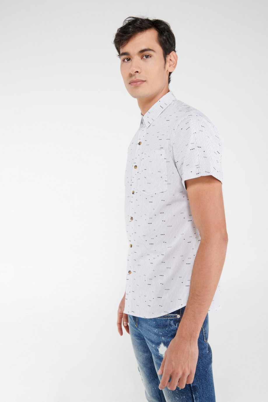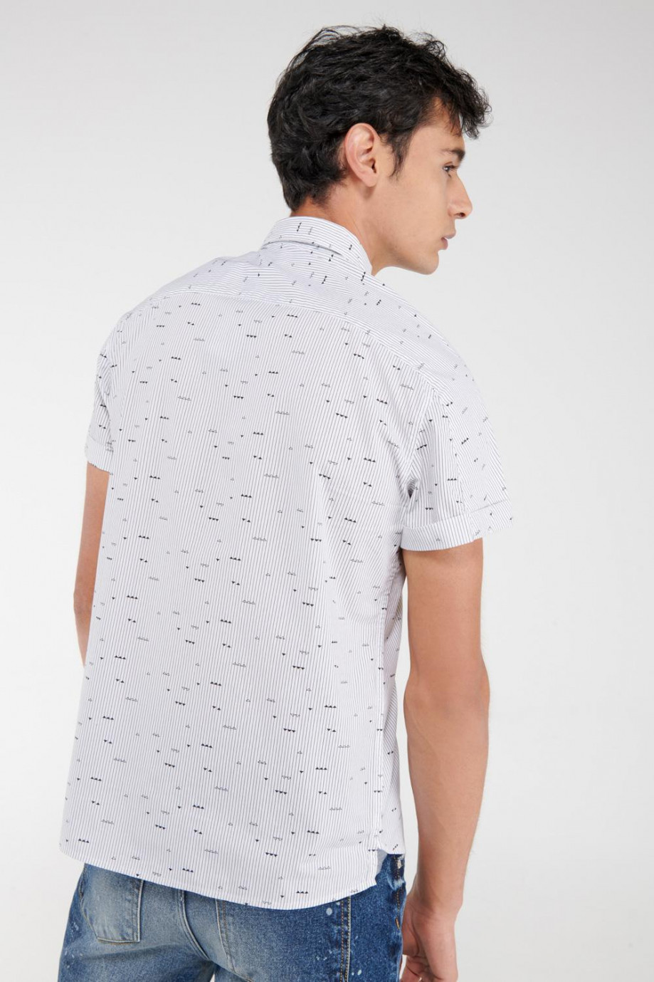 Camisa para hombre, en tela estampada con bolsillo delantero