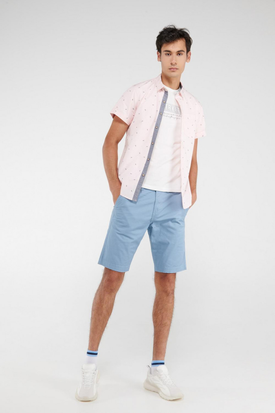 Camisa para hombre, en tela estampada con bolsillo delantero
