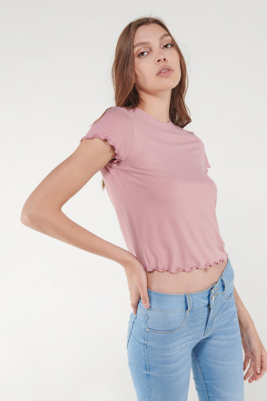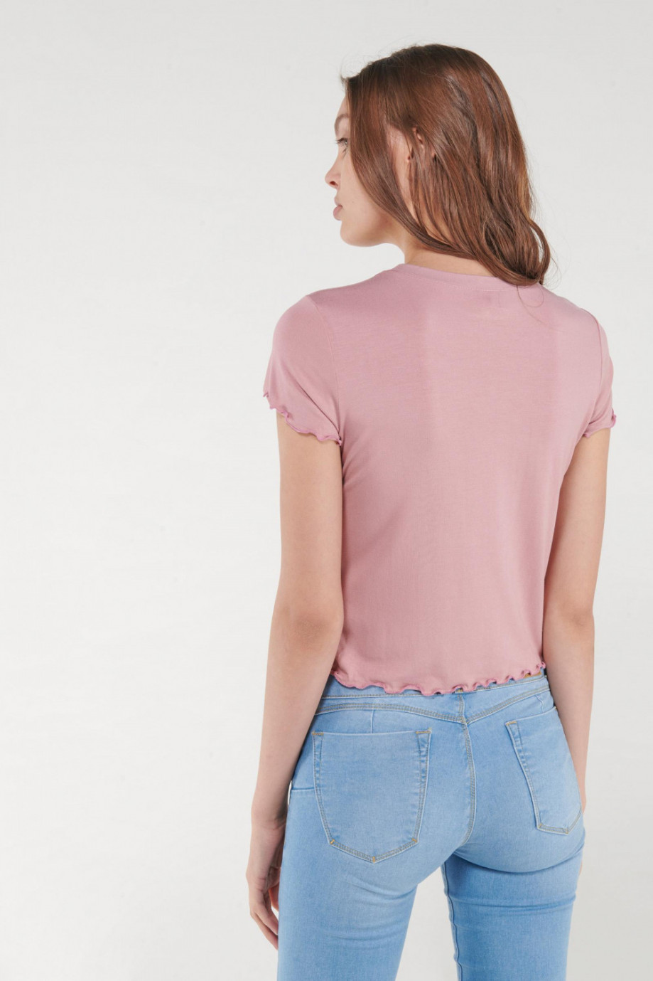 Camiseta, manga corta, cuello redondo, unicolor.