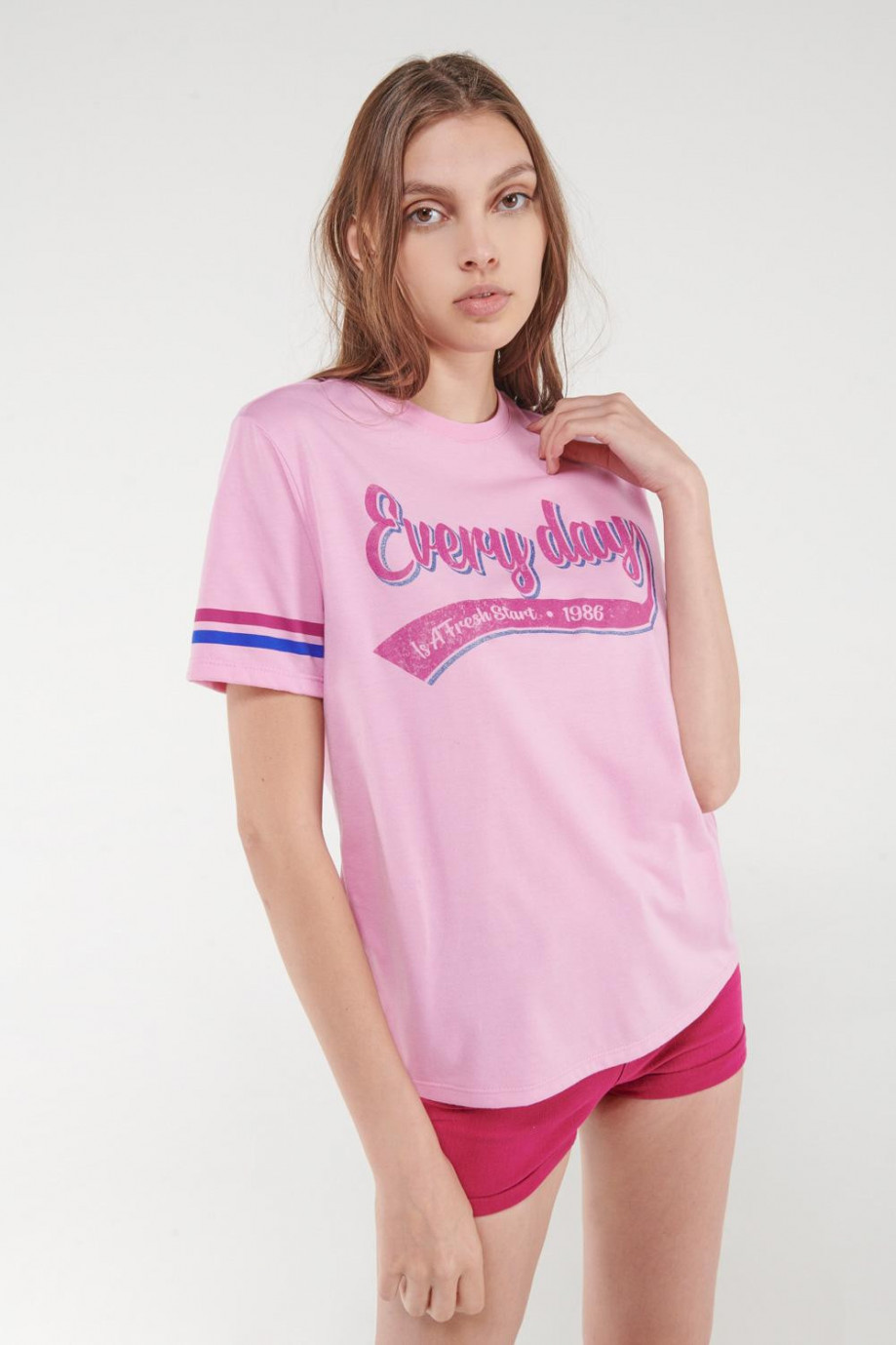 Camiseta, manga corta, con estampado en frente.