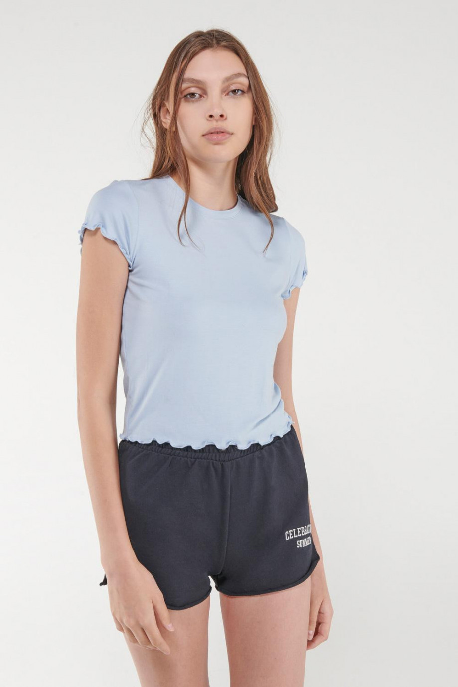Camiseta, manga corta, cuello redondo, unicolor.