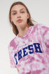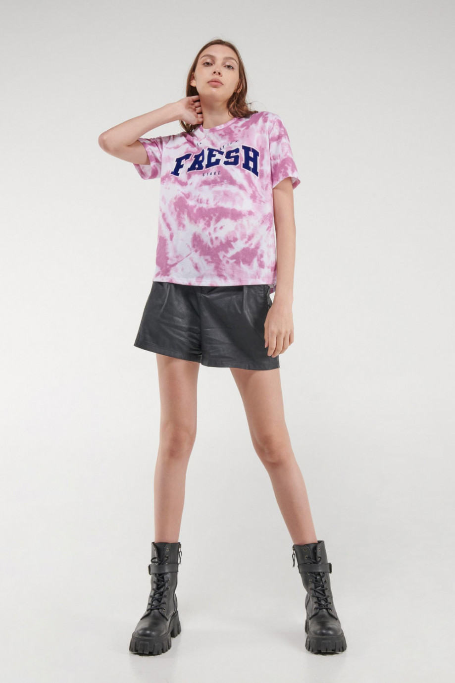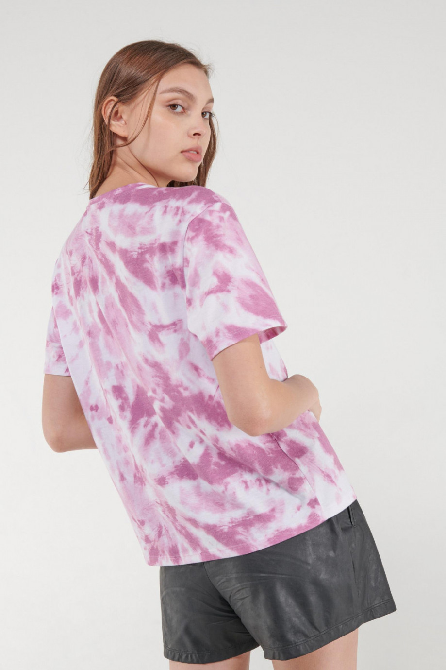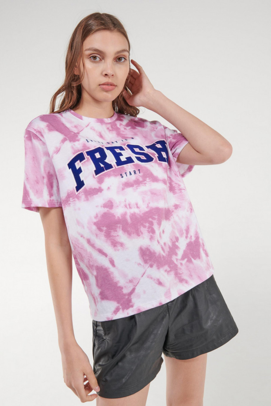 Camiseta para mujer, manga corta, con estampado tie dye y college