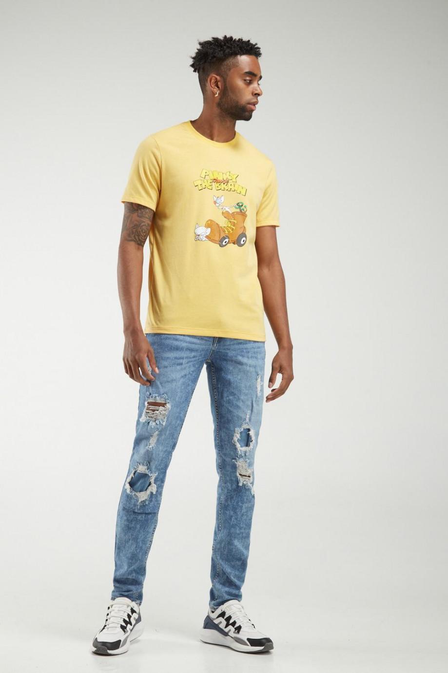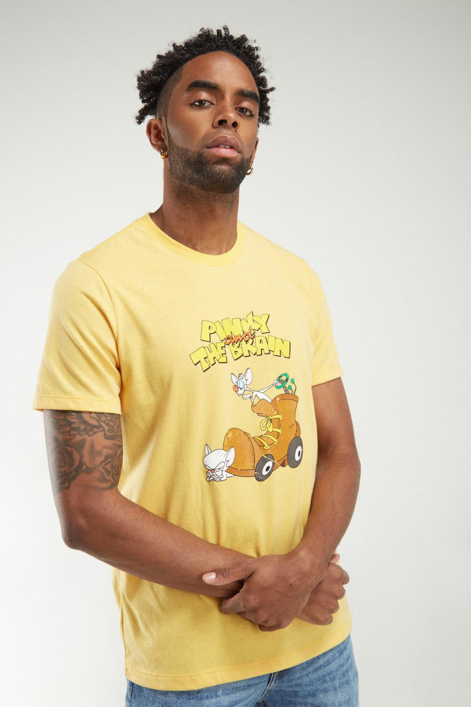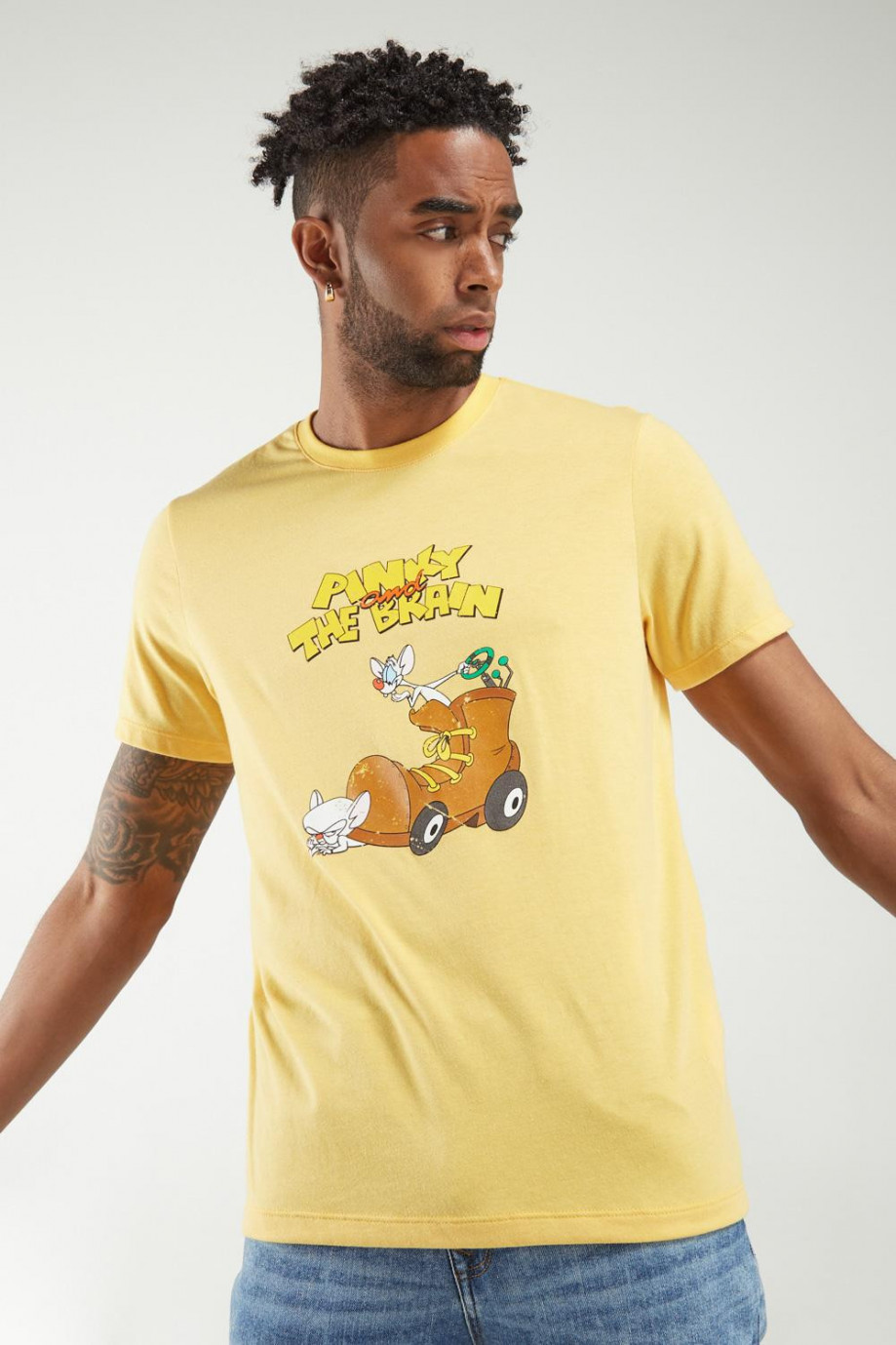 Camiseta cuello redondo, manga corta para hombre con estampado en frente de Pinky & Cerebro.