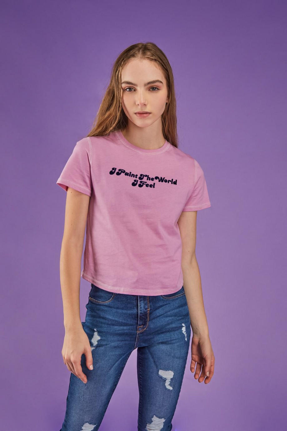 Camiseta, para mujer manga corta, con estampado en frente.