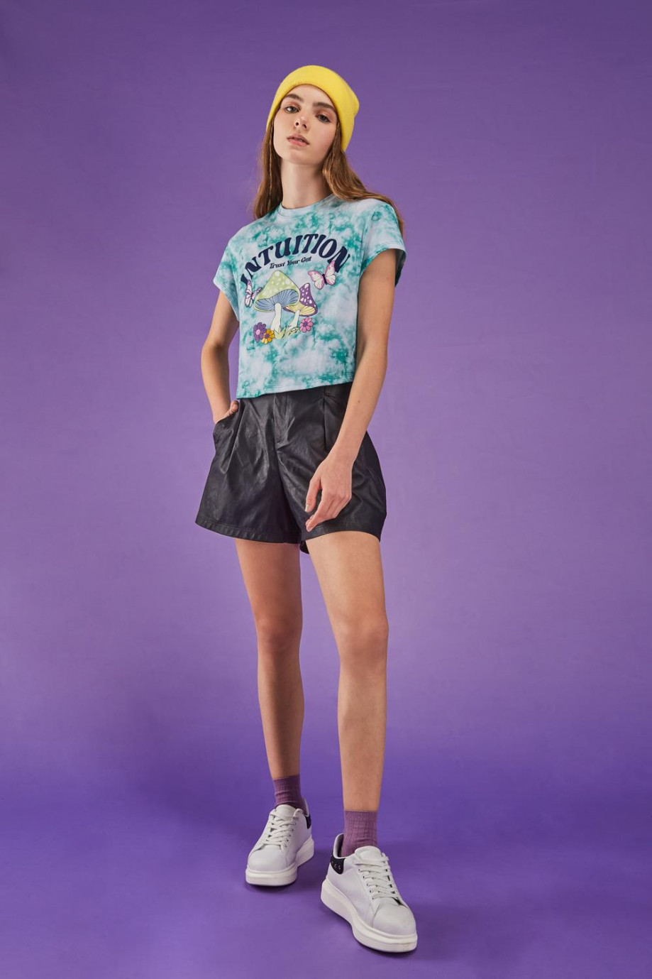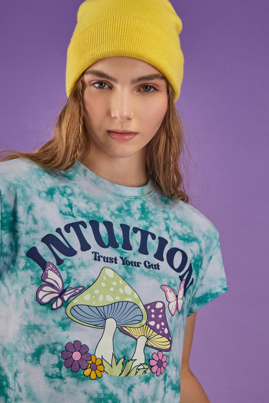 Camiseta, para mujer manga corta, con estampado tie dye en frente