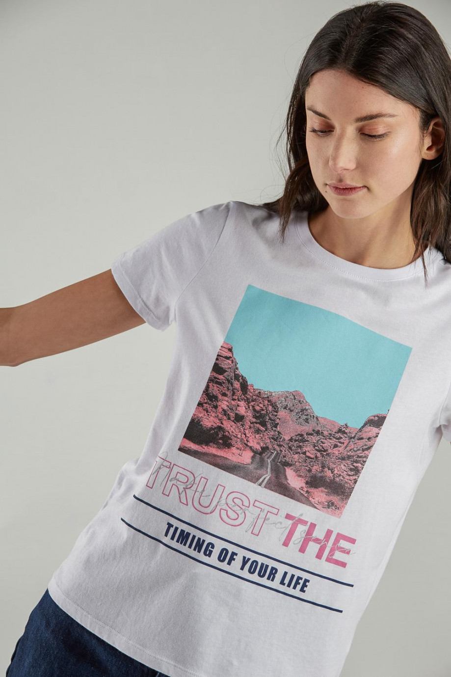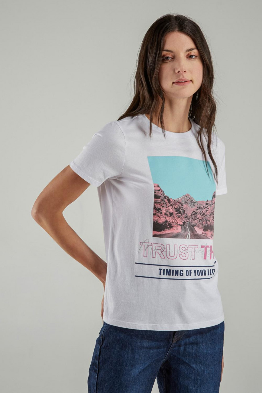Camiseta básica para mujer manga corta, estampada.