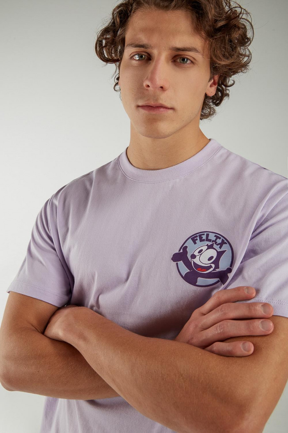 Camiseta para hombre manga corta, estampado en frente y espalda de Felix el Gato.