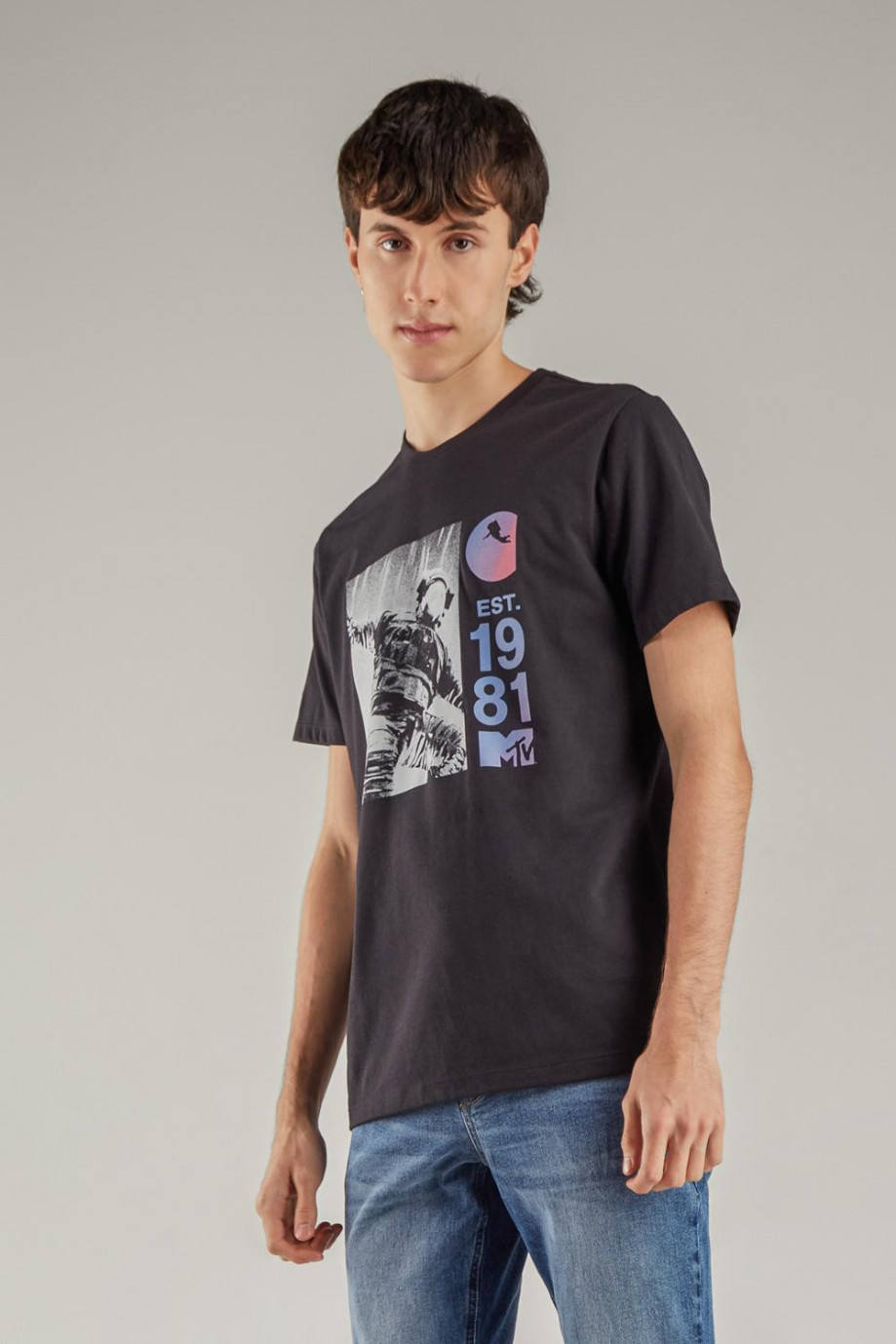 Camiseta para hombre manga corta, estampado en frente de MTV.
