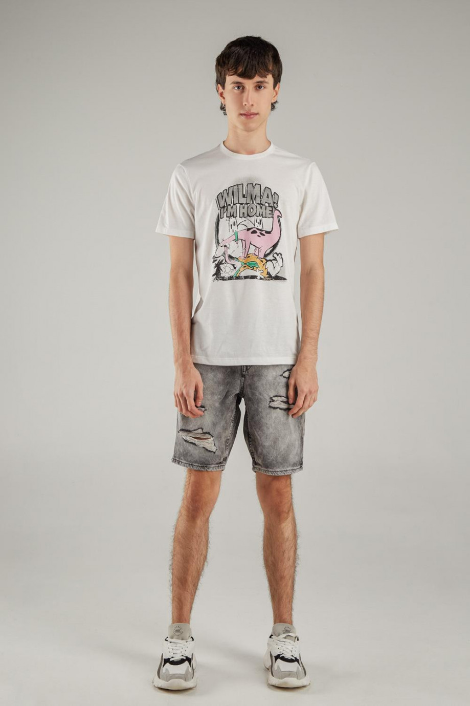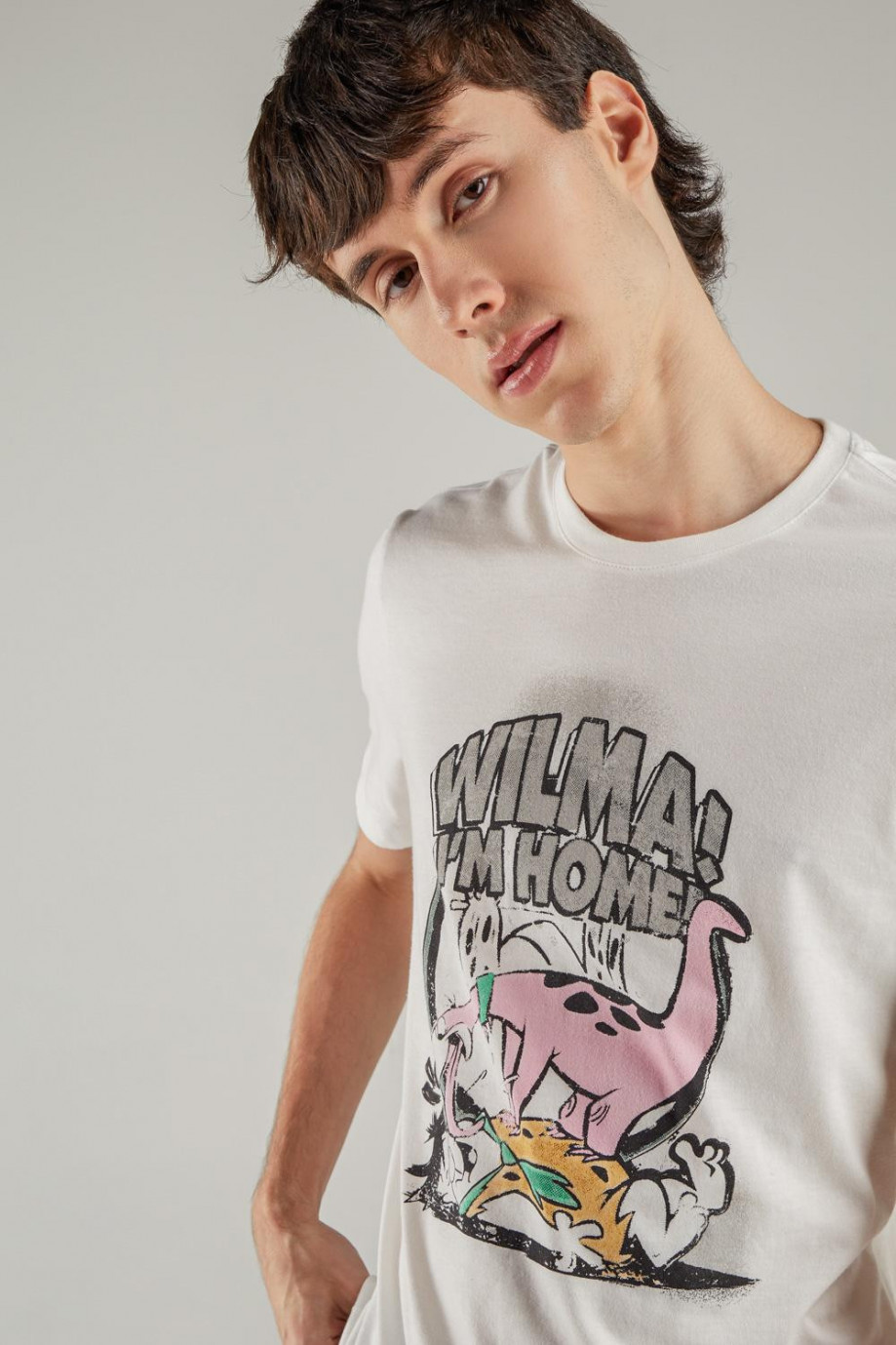 Camiseta manga corta, para hombre, con estampado en frente de Los Picapiedra.