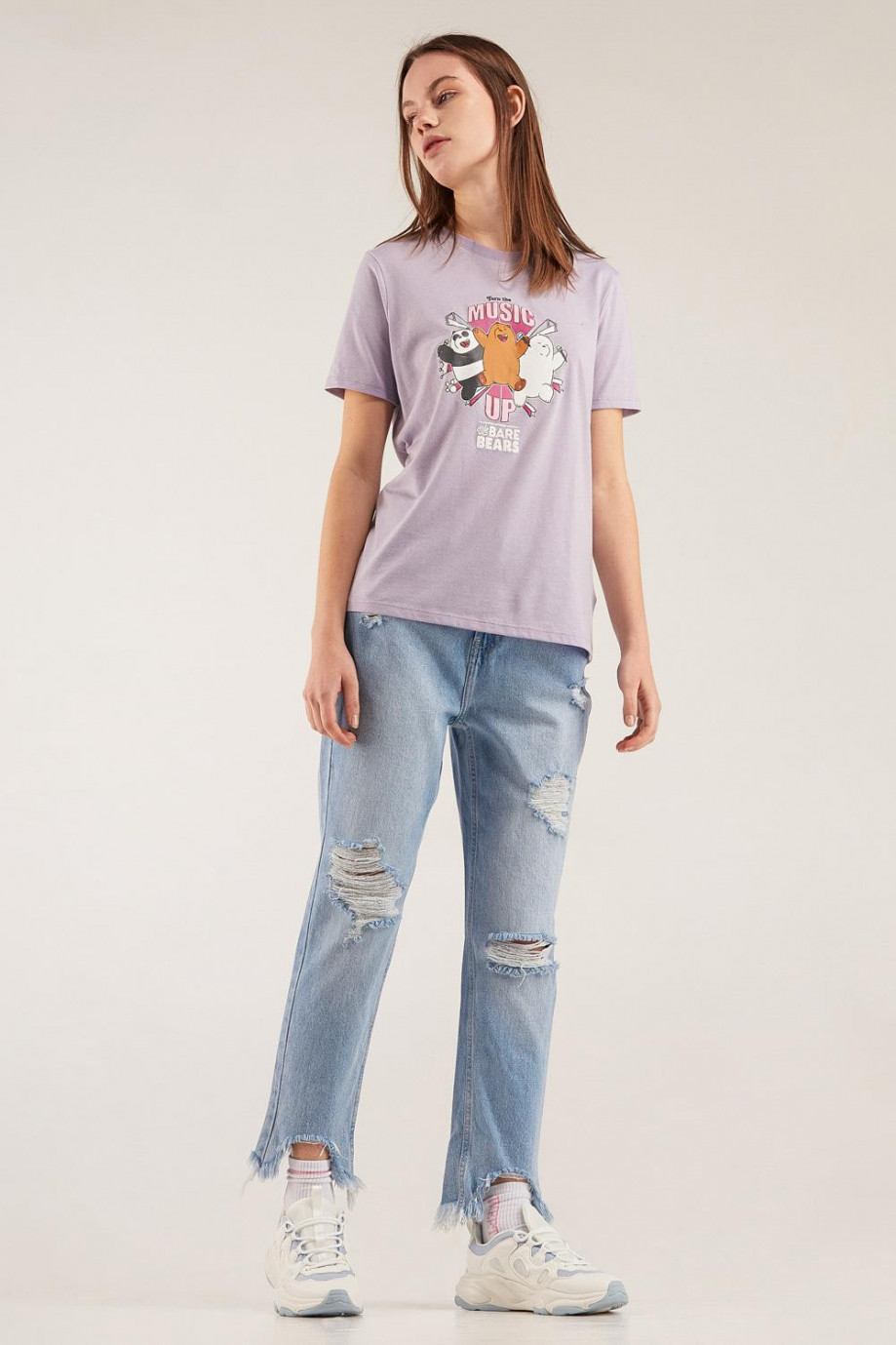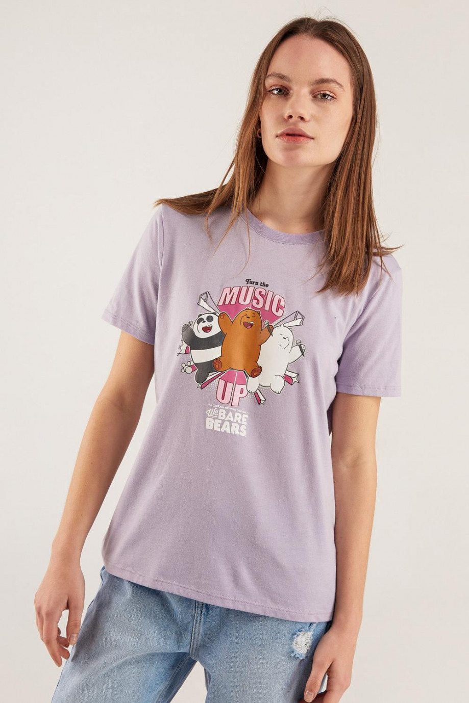 Camiseta, manga corta para mujer, con estampado en frente de Escandalosos.
