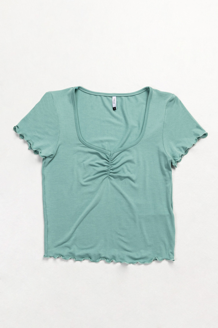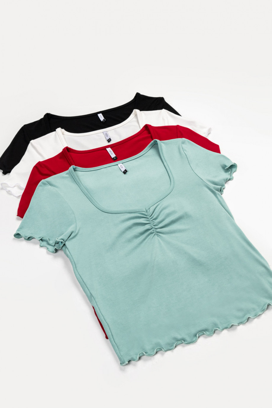 Camiseta para mujer, cuello en v con recogido, manga corta