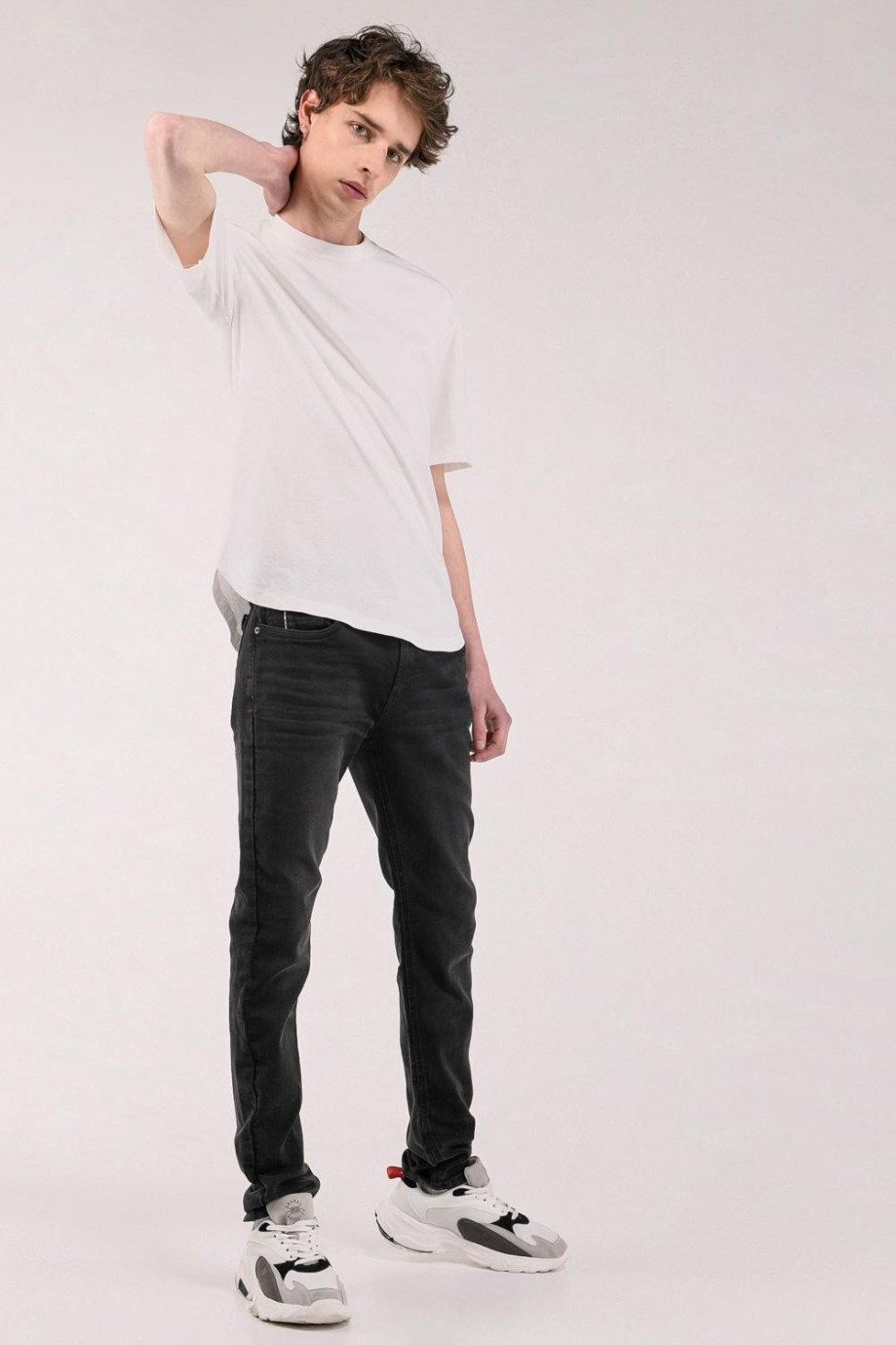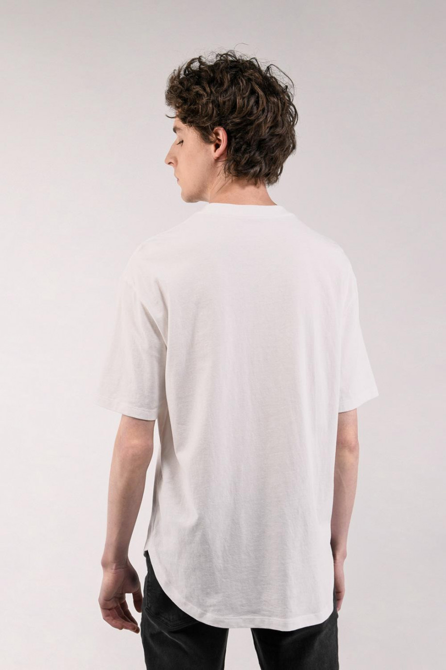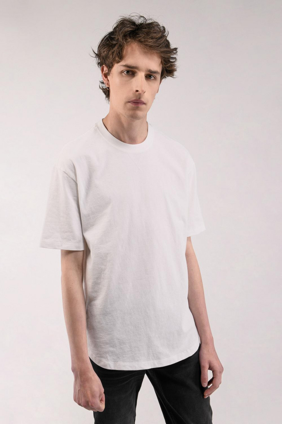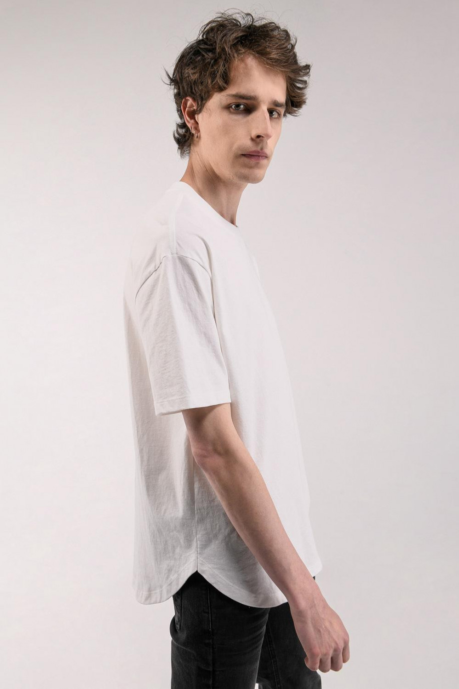 Camiseta básica para hombre manga corta, unicolor con costura decorativa en cuello y curva en el ruedo