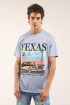 Camiseta, para hombre manga corta, cuello redondo con estampado localizado en frente y bloques de color.