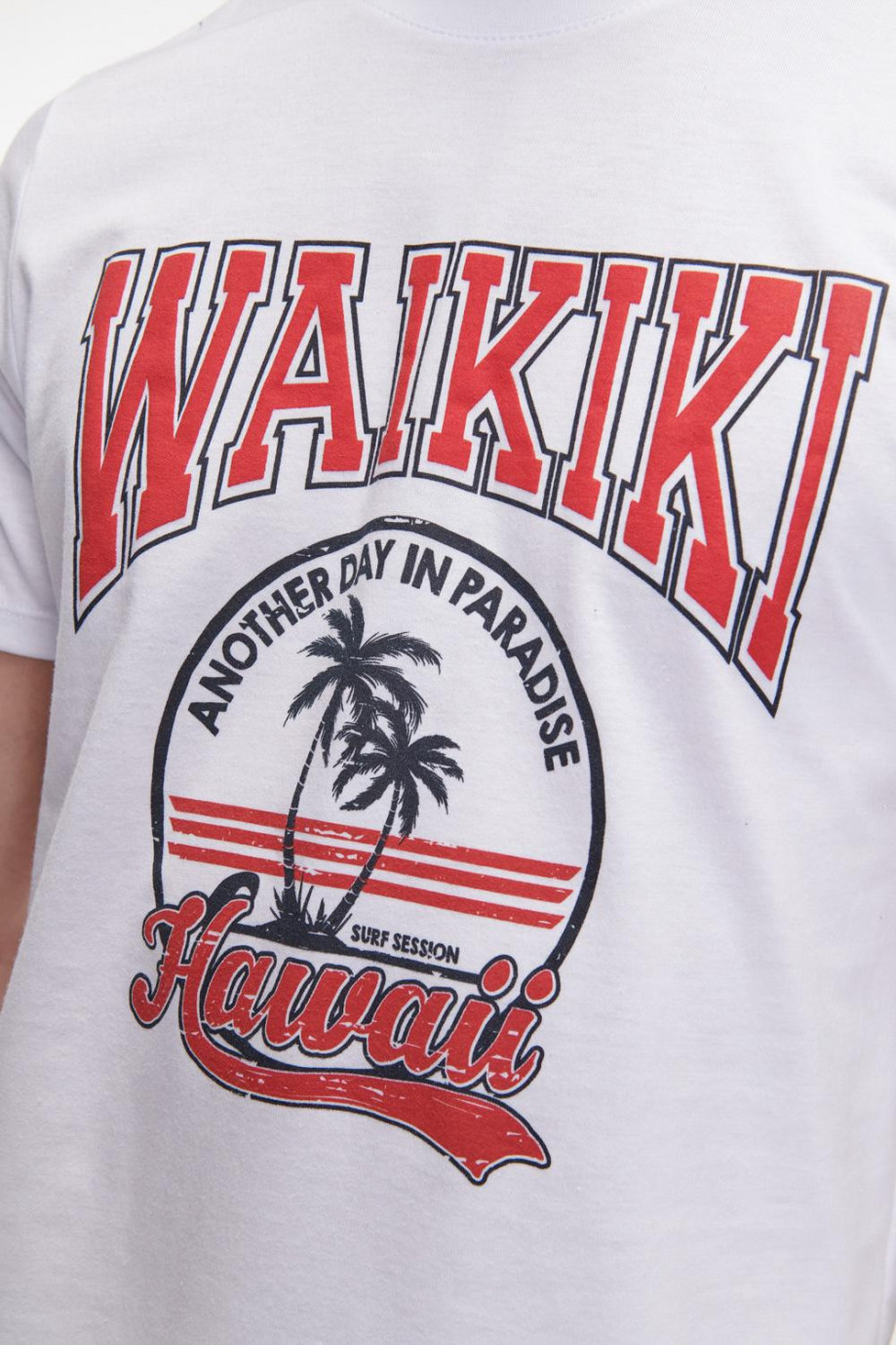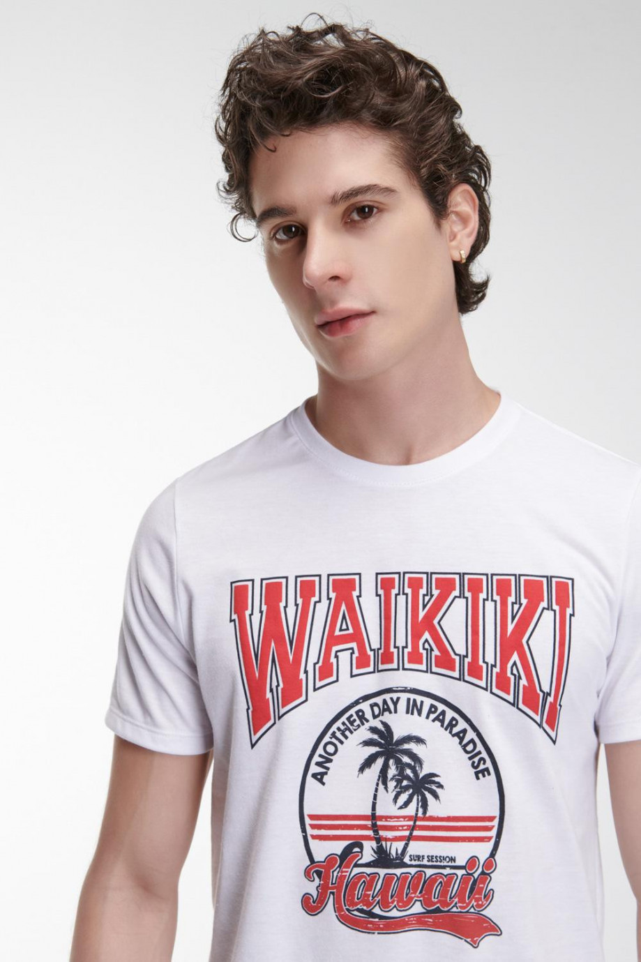 Camiseta básica para hombre cuello redondo manga corta con estampado en frente.