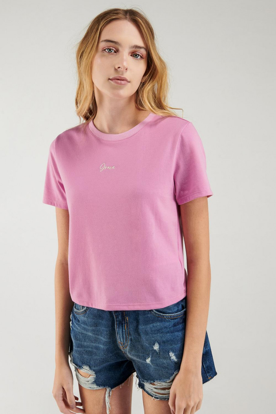 Camiseta manga corta con bordado.