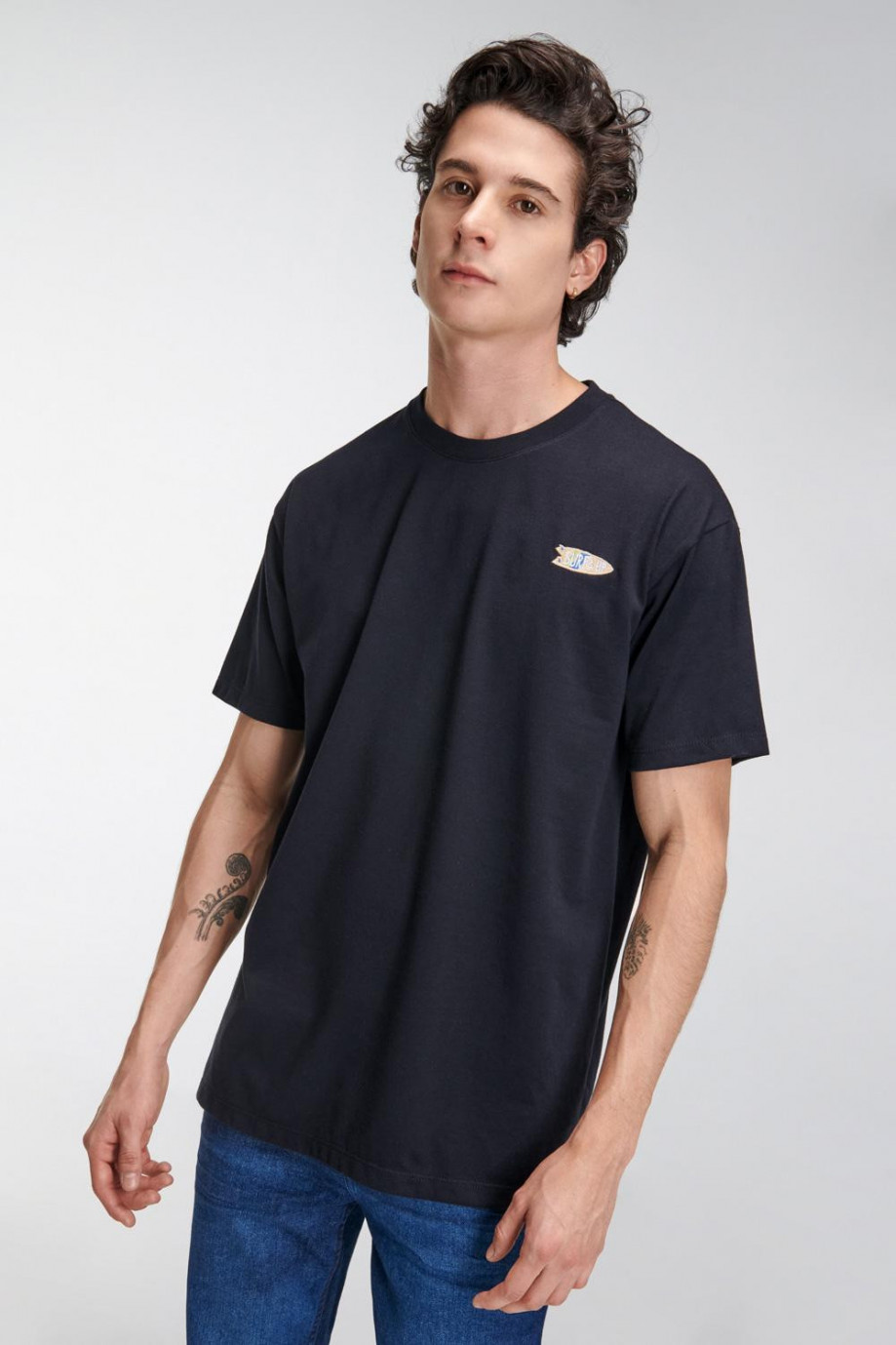 Camiseta estampada, cuello redondo, manga corta con bordado en frente