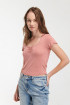 Camiseta para mujer, cuello en v con recogido, manga corta