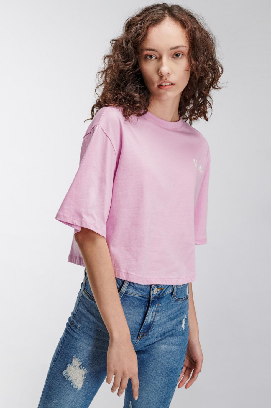 Camiseta cuello redondo para mujer, manga corta con estampado loungewear.