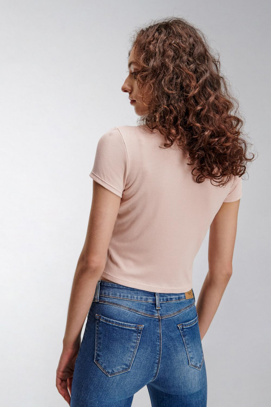 Camiseta manga corta, para mujer, con escote y anudado en frente.