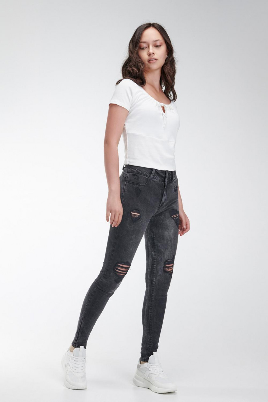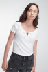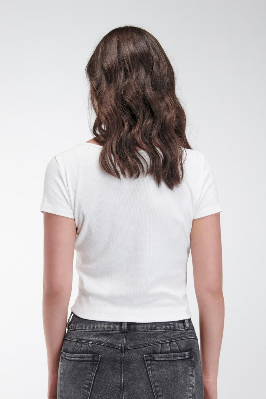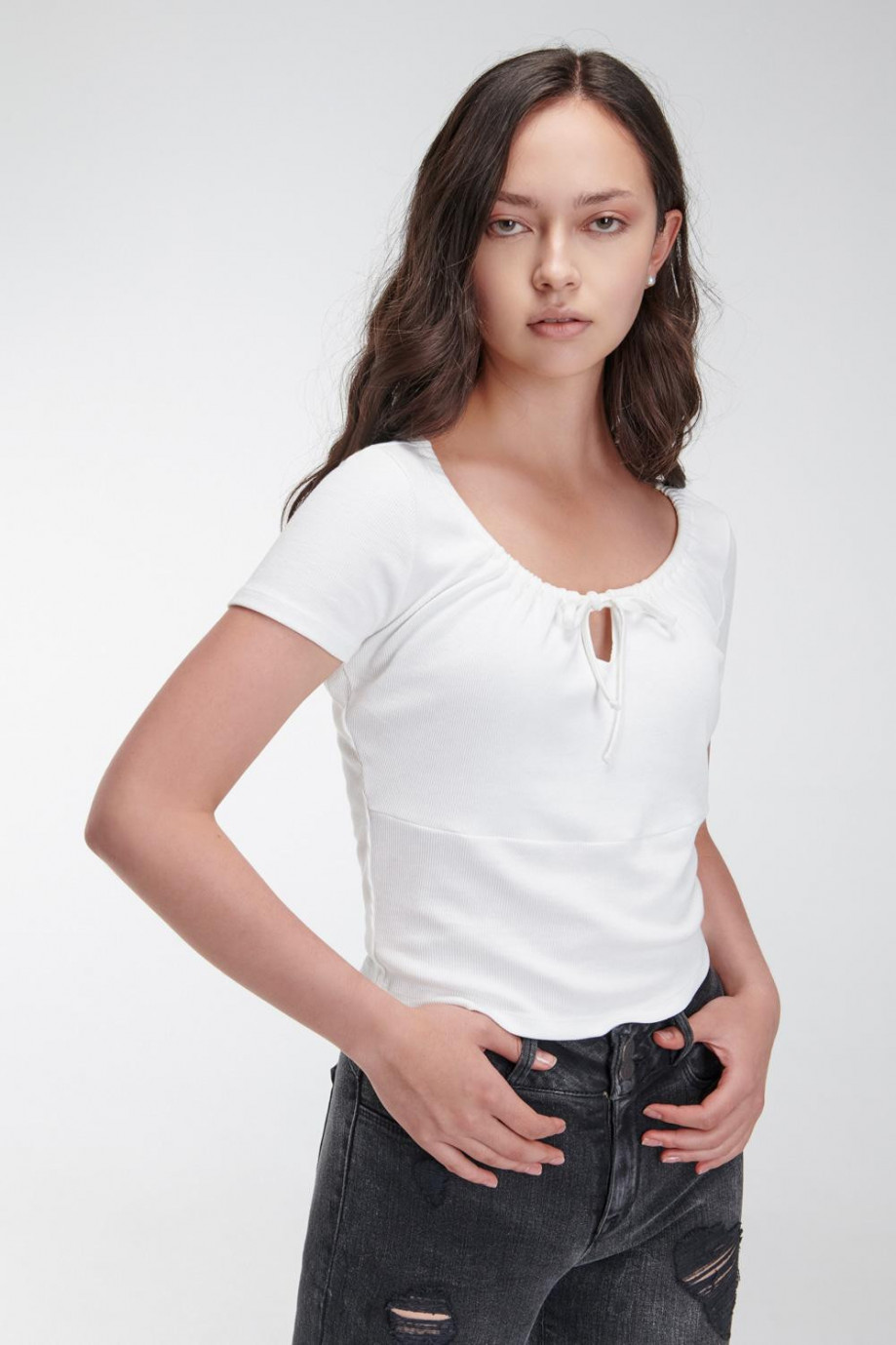 Camiseta manga corta, para mujer, con escote y anudado en frente.